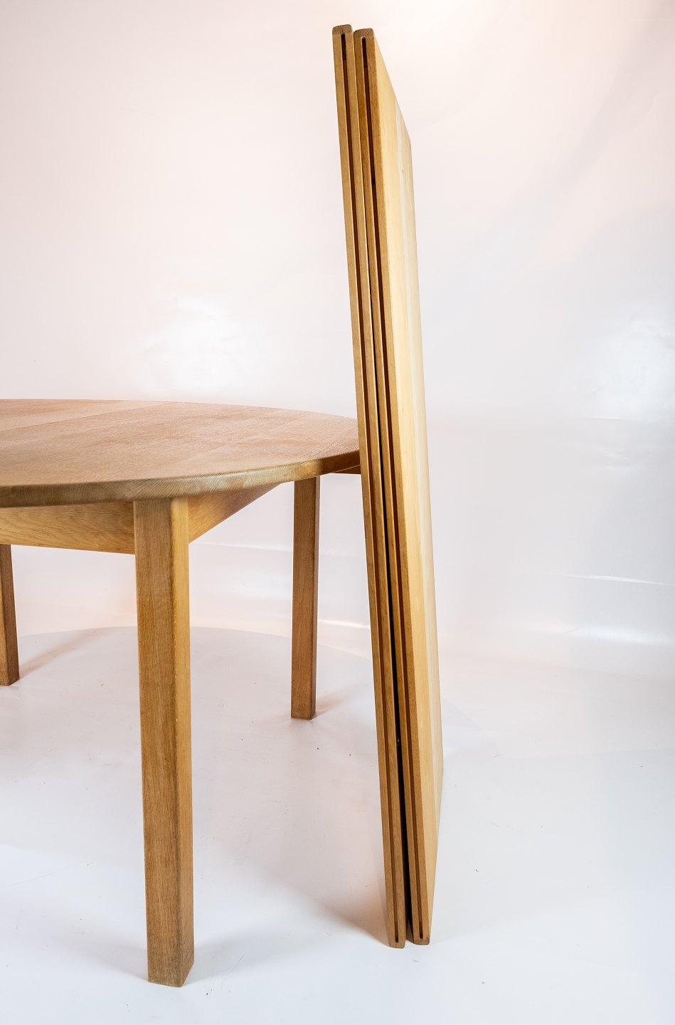 Dining table of oak with extension leaves designed by Kurt Østervig.