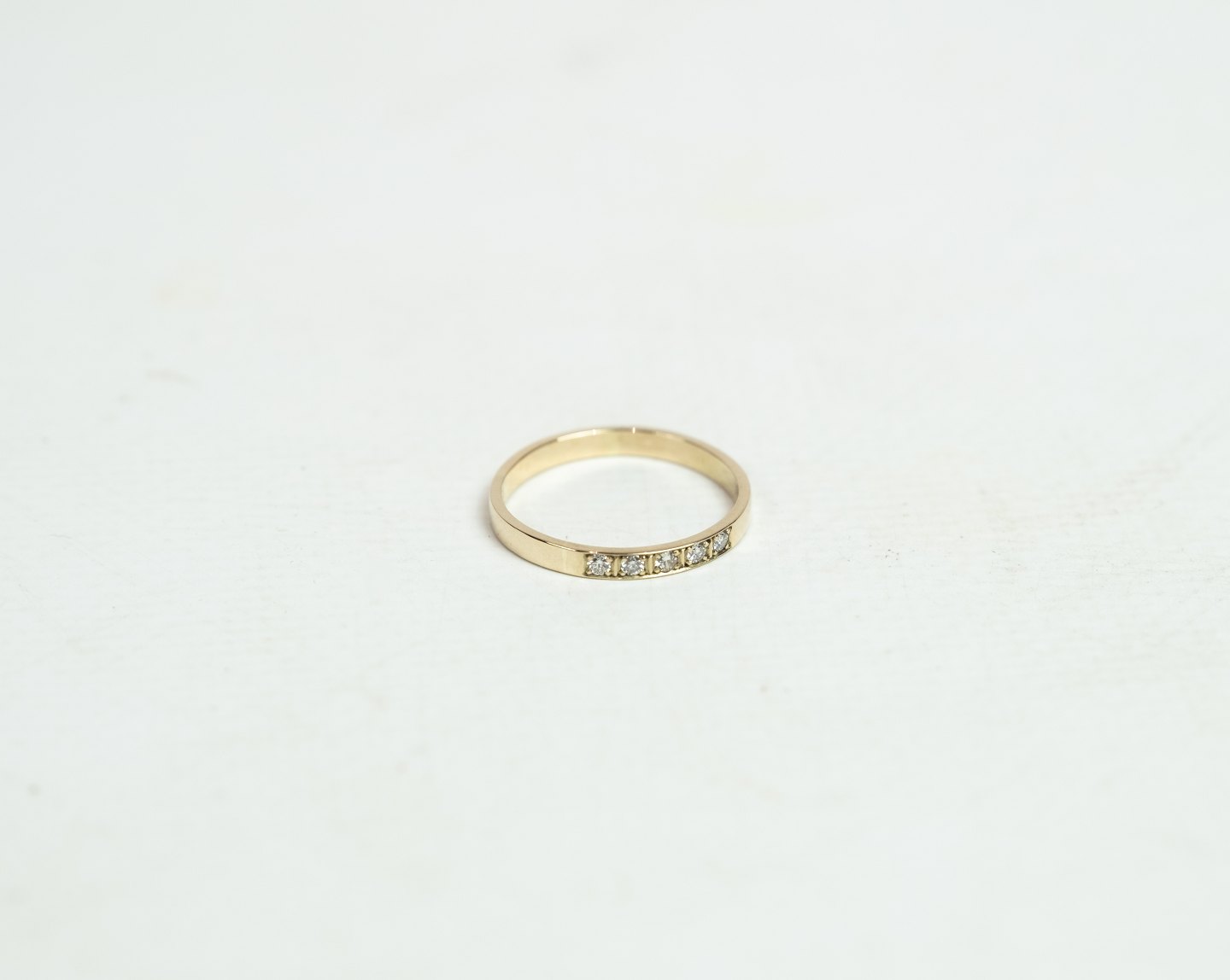 Alliance ring i 14 karat guld dekoreret med 5 små diamanter.