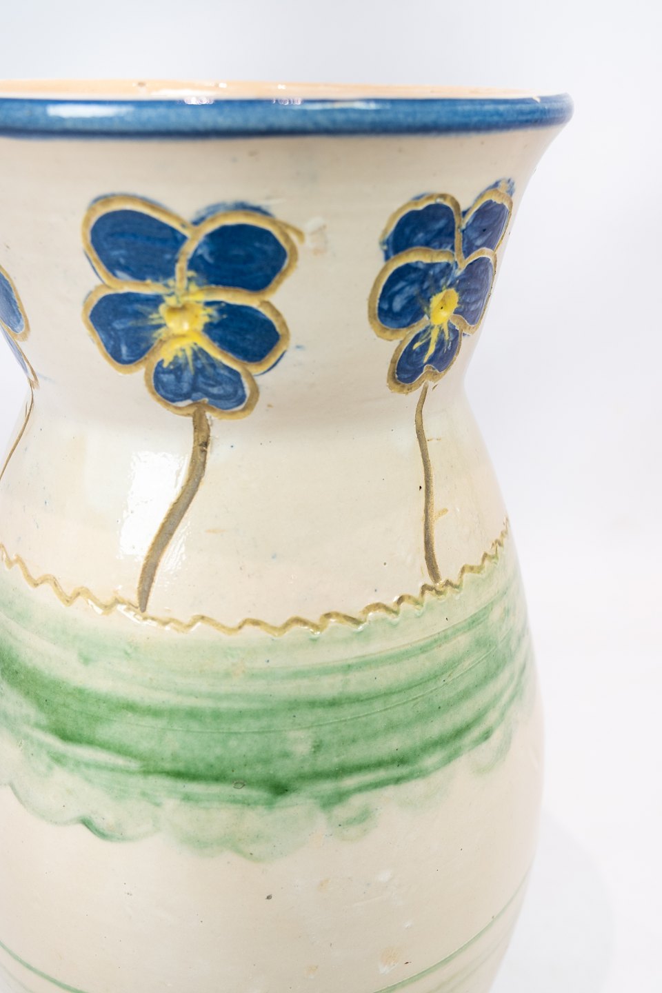 SoldCeramic floor vase in light color decorated with blue flowers. The vase is in great vintage condition.