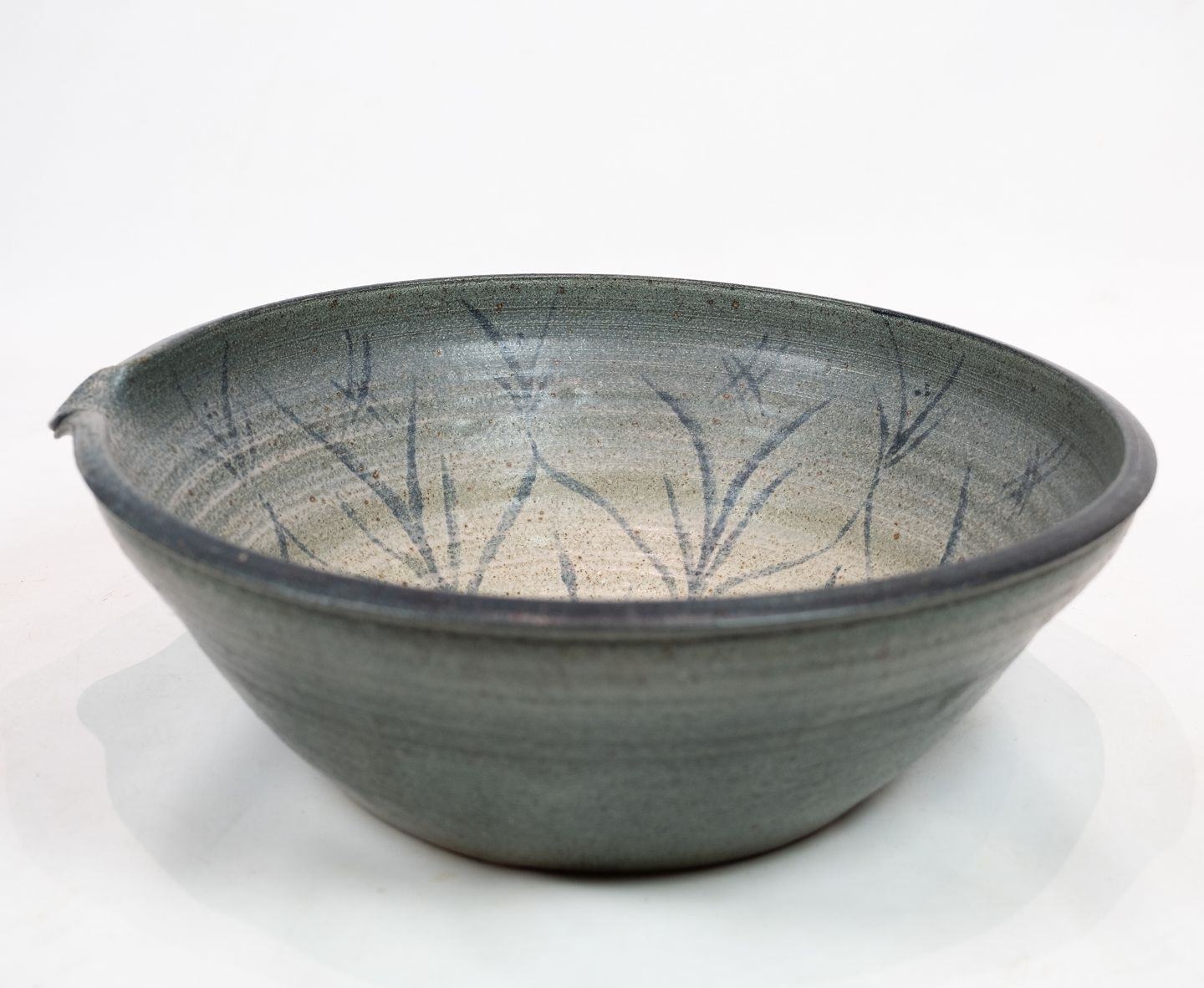 Stor grå keramik skål dekoreret med mønster indvendigt af Weiss.