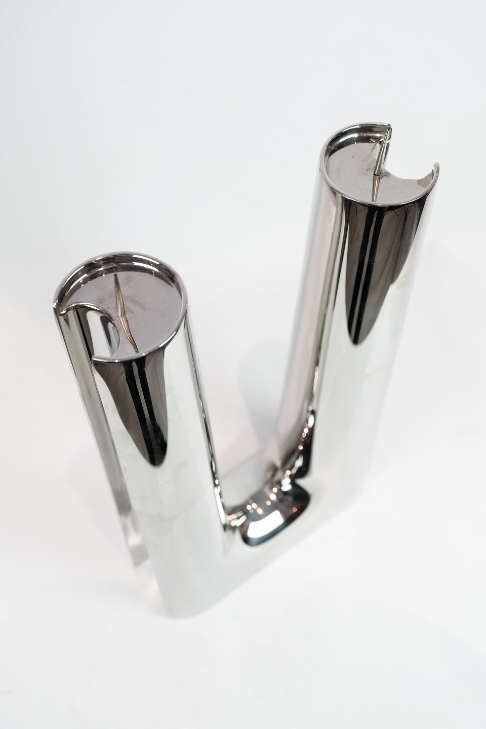 Copenhagen lysestage i rustfrit stål designet af Søren Georg Jensen i 1960erne for Georg Jensen.