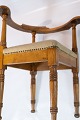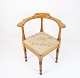 Armchair in polished oak and upholstered with light embroided fabric from the 1910s.