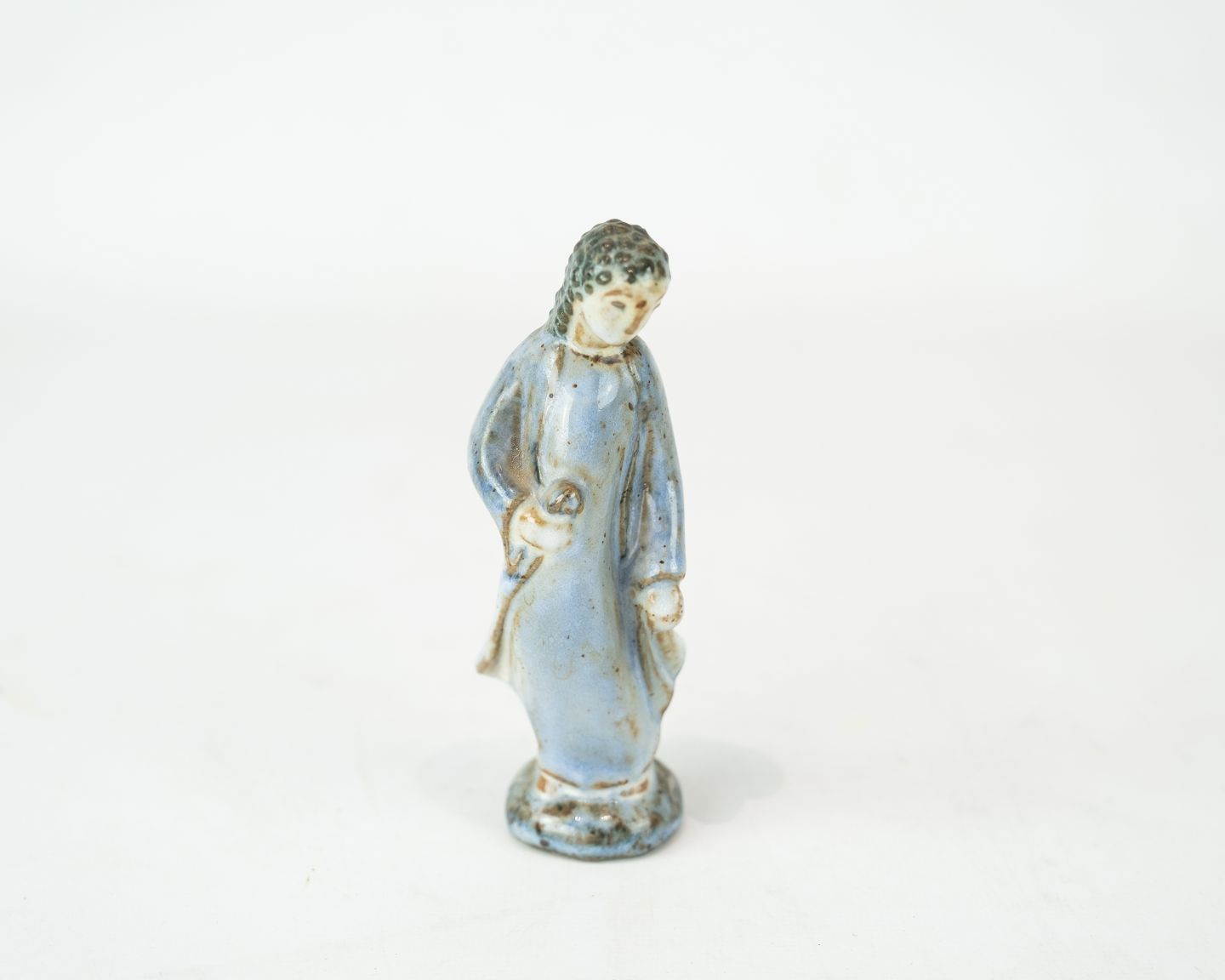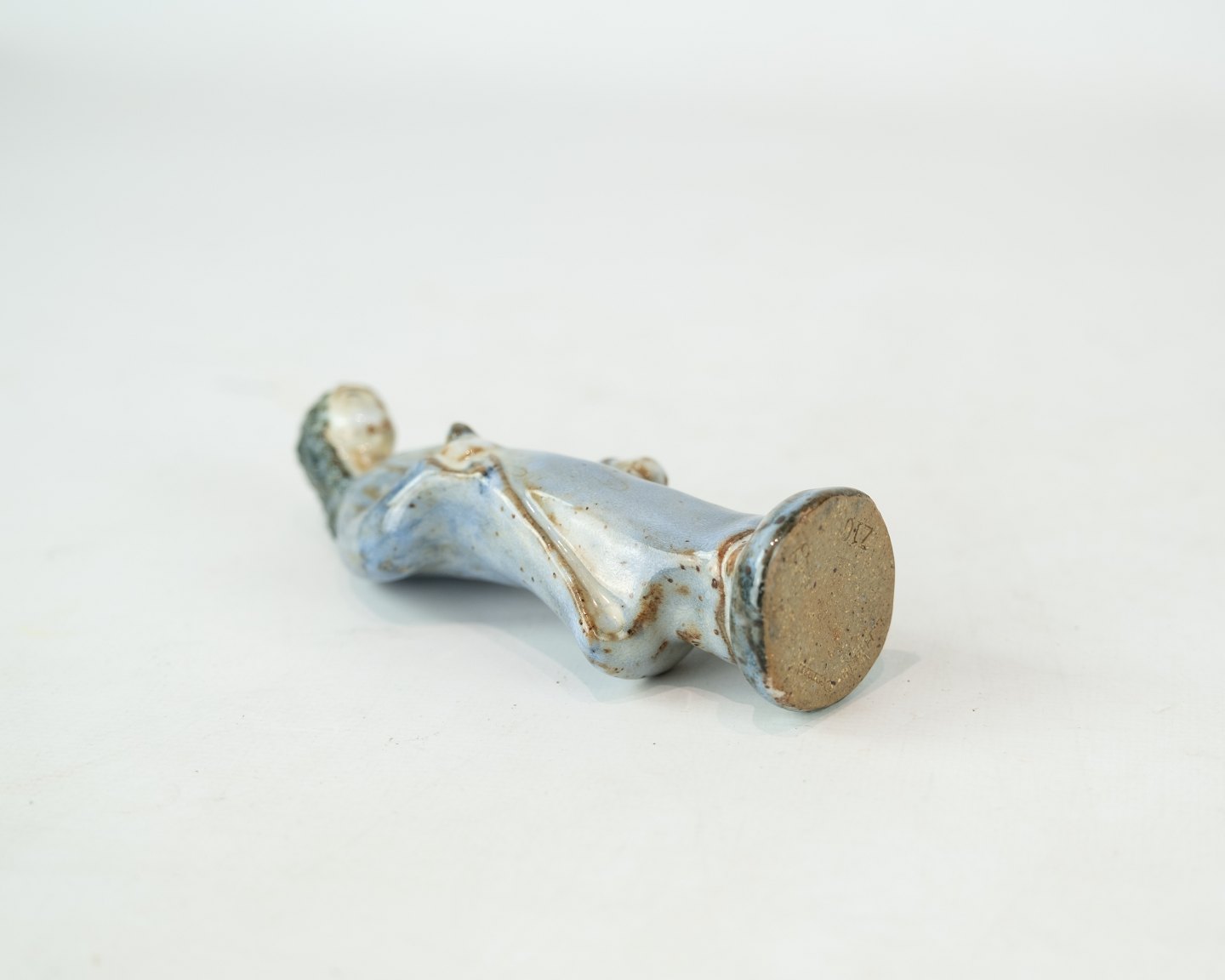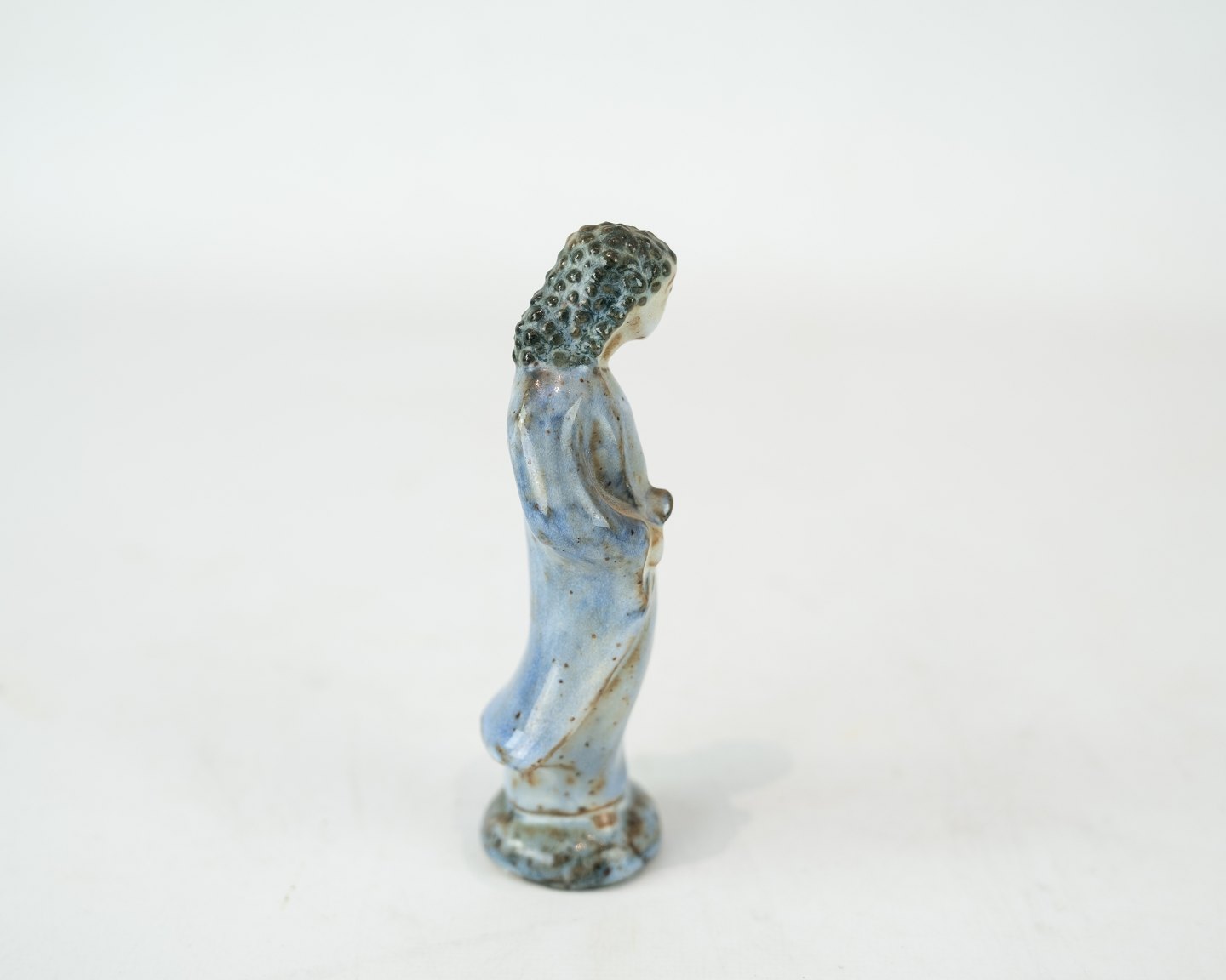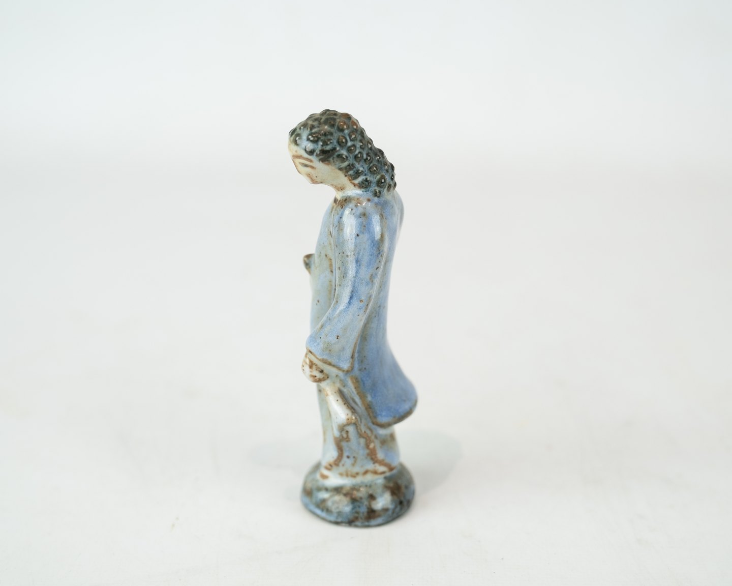 Stoneware figure with light blue glaze by L. Hjorth.
