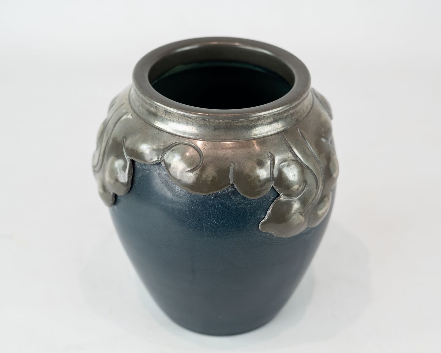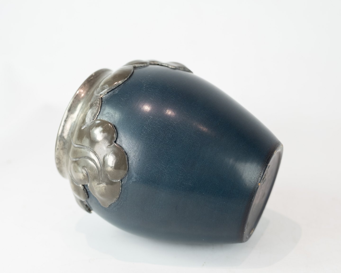 Ceramic vase in dark blue decorated with metal edge by Ibsen Enke.
