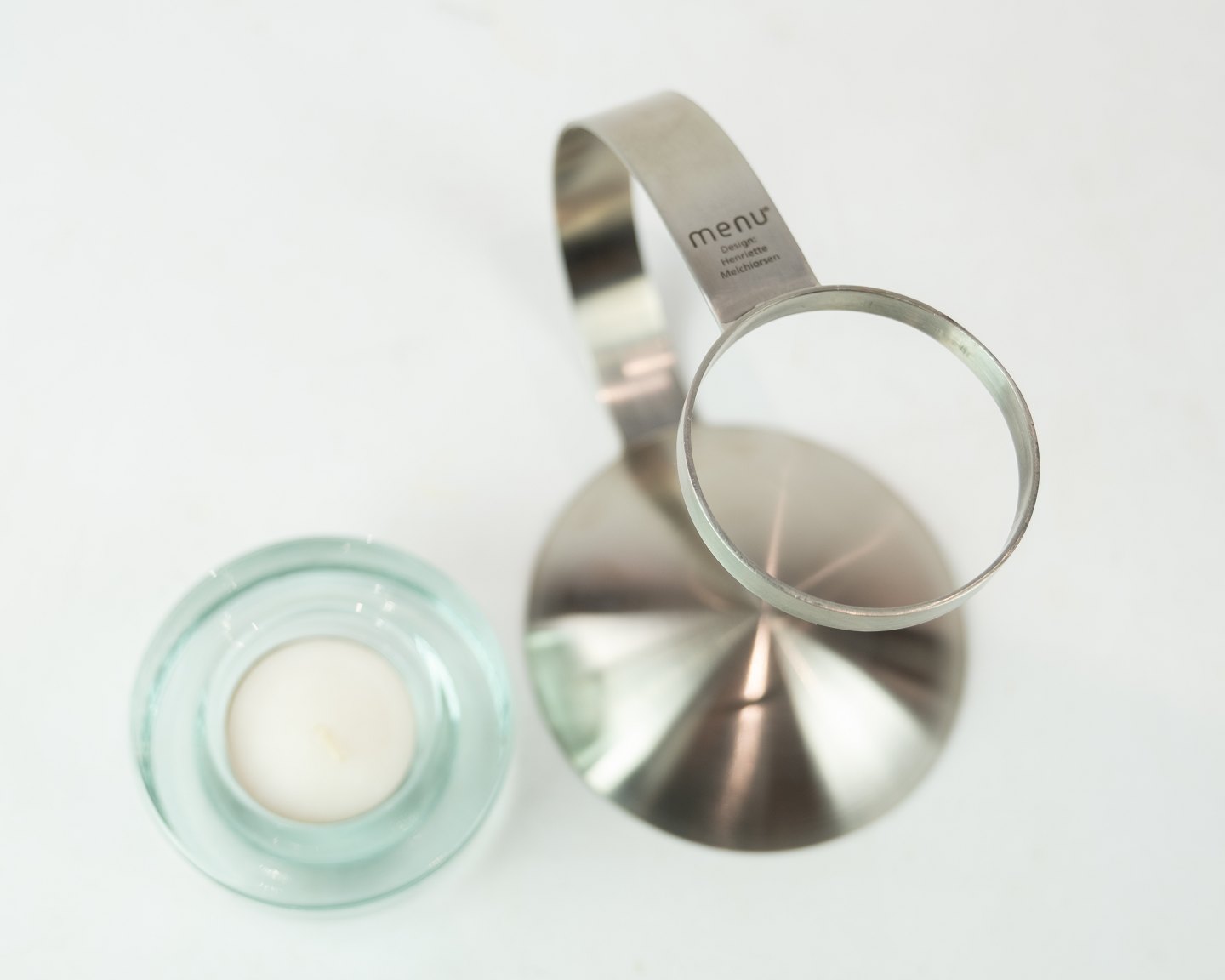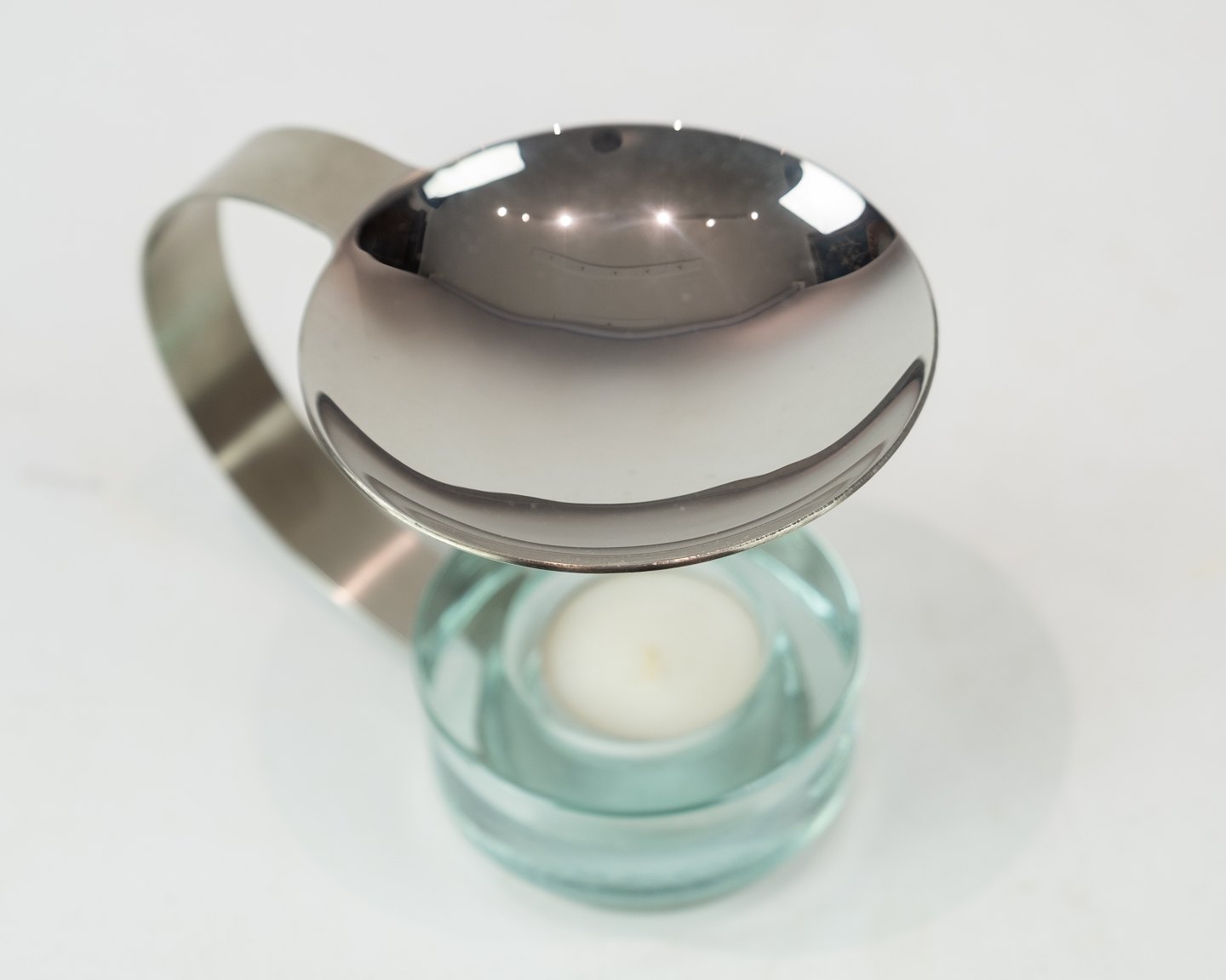 Tea light holder of glass and metal, in great used condition.