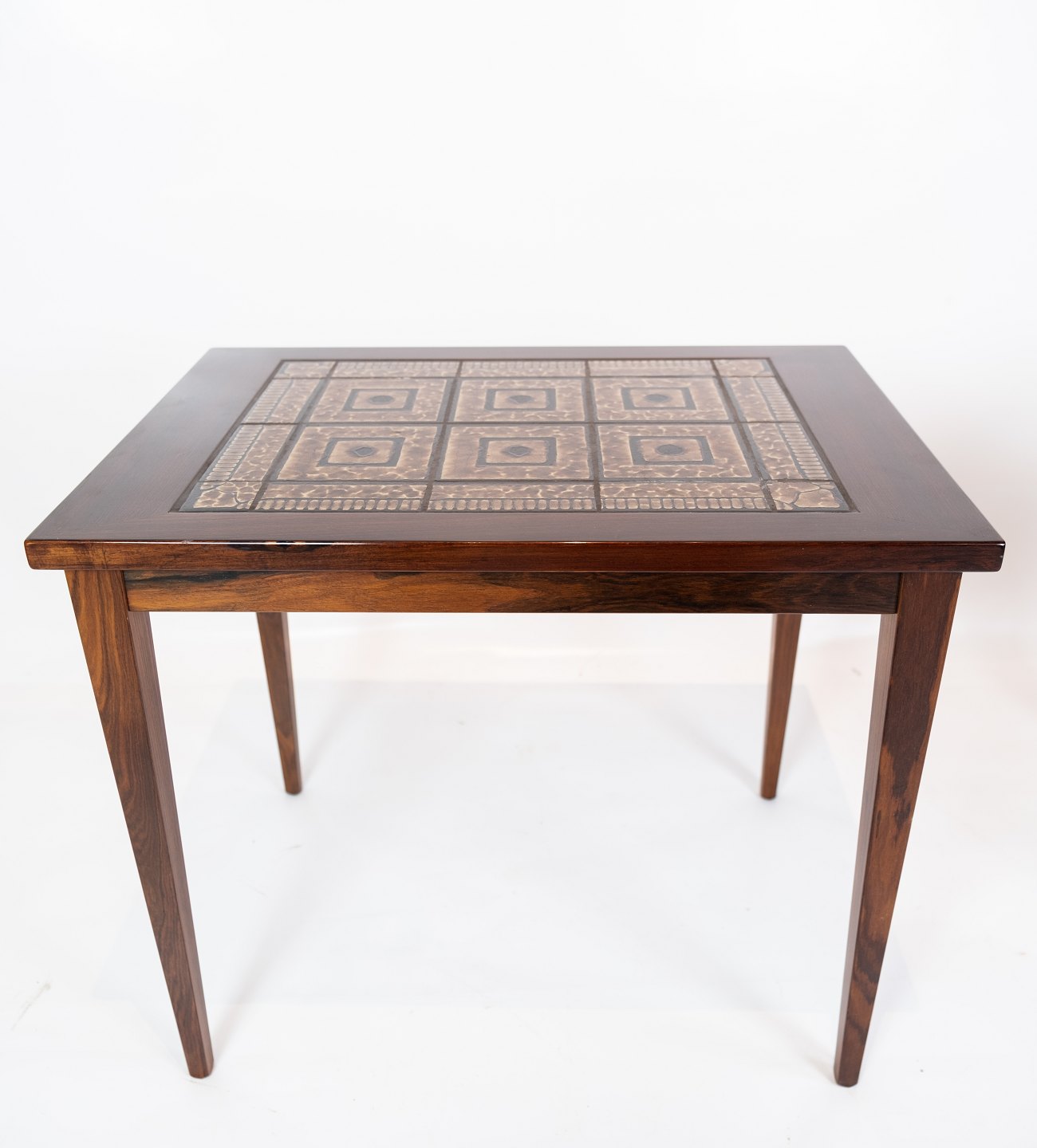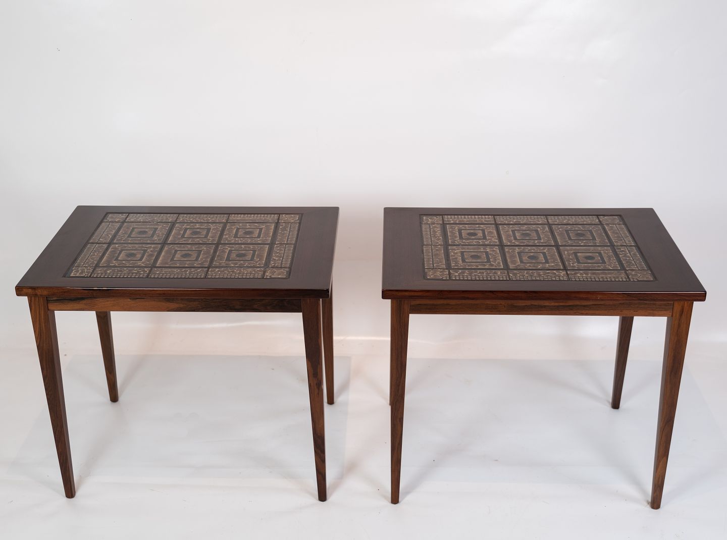 SoldA pair of bedside tables in mahogany with brown tiles of danish design from the 1960s. The tables are in great vintage condition.