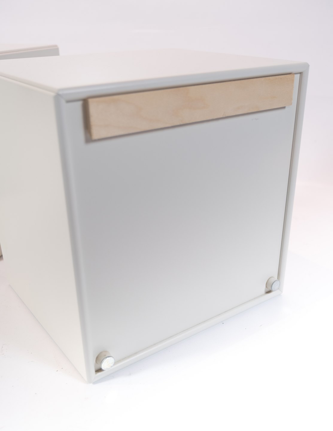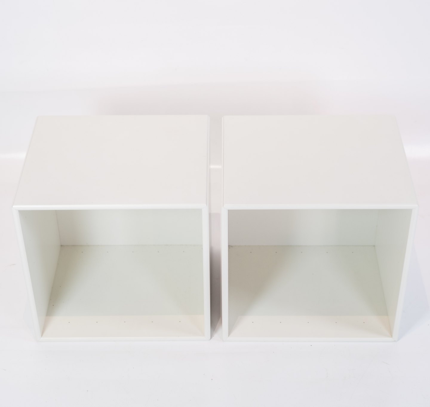 SolgtEt par små hvide Montana moduler designet af Peter J. Lassen, i flot stand.