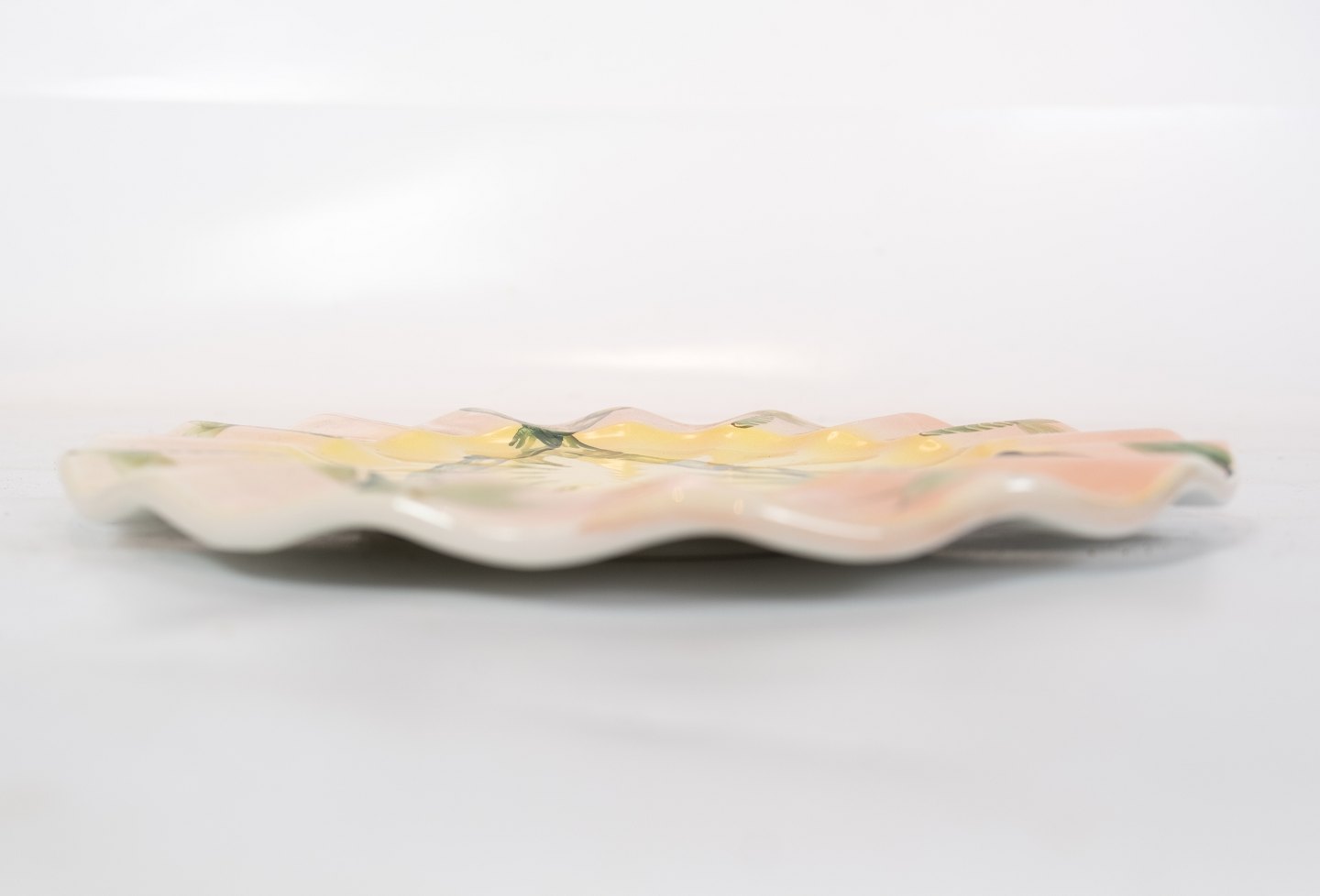 Middagstallerken i lyse farver af italiensk porcelæn.
