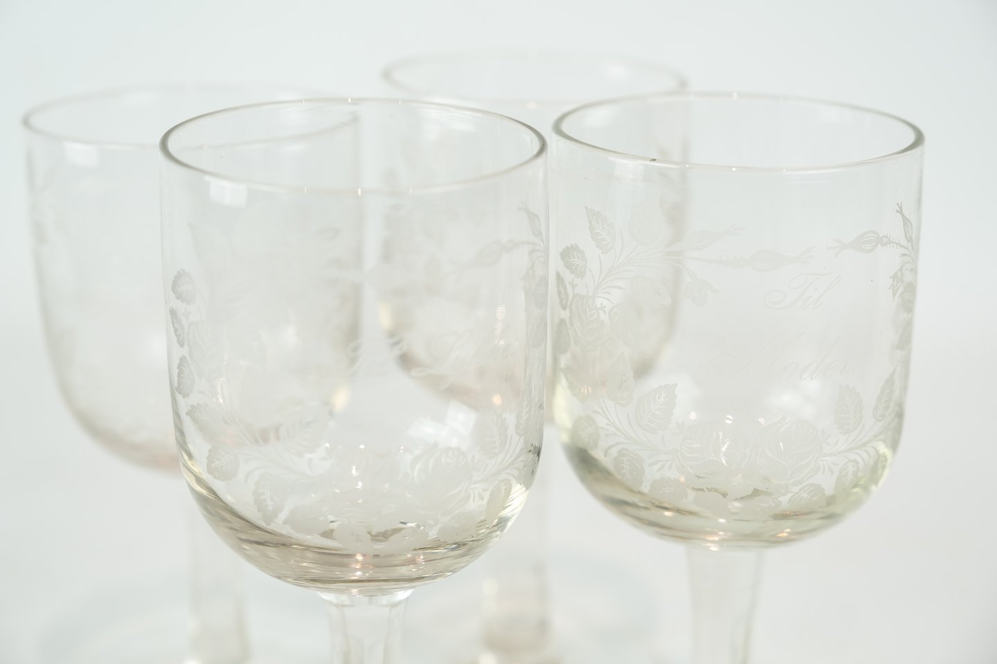 Sæt af fire erindringsglas af Holmegaard fra 1890erne.