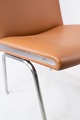 Wegner's design for the CH401 lounge chair demonstrates a mastery of minimalist aesthetics. The chair's simple tubular-steel frame challenges the notion that upholstered furniture must be large or bulky. Wegner ingeniously concealed the mechanisms for attaching the upholstered fabric to the frame with a slender, angled element made of stainless steel, resulting in a clean and uncluttered appearance.