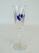 set of six champagne glass decorated with blue and gold flowers.