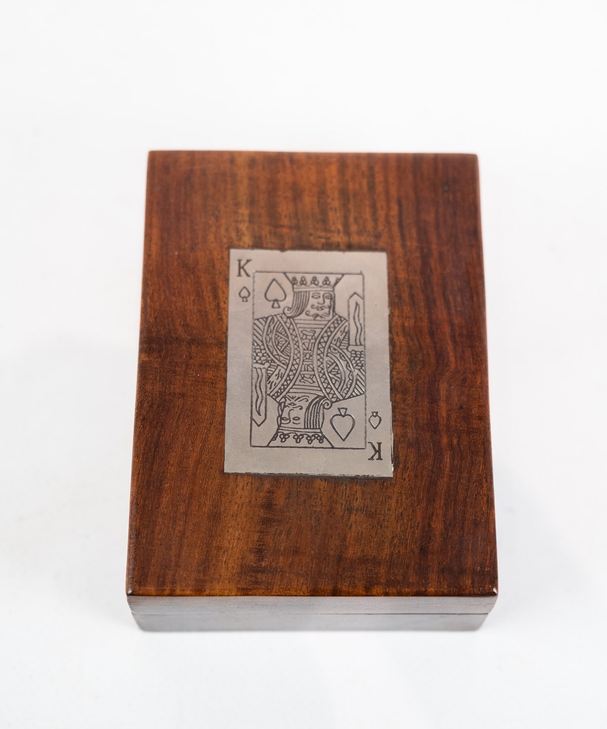 Box for and decorated with playing cards in rosewood. The box is in great vintage condition.