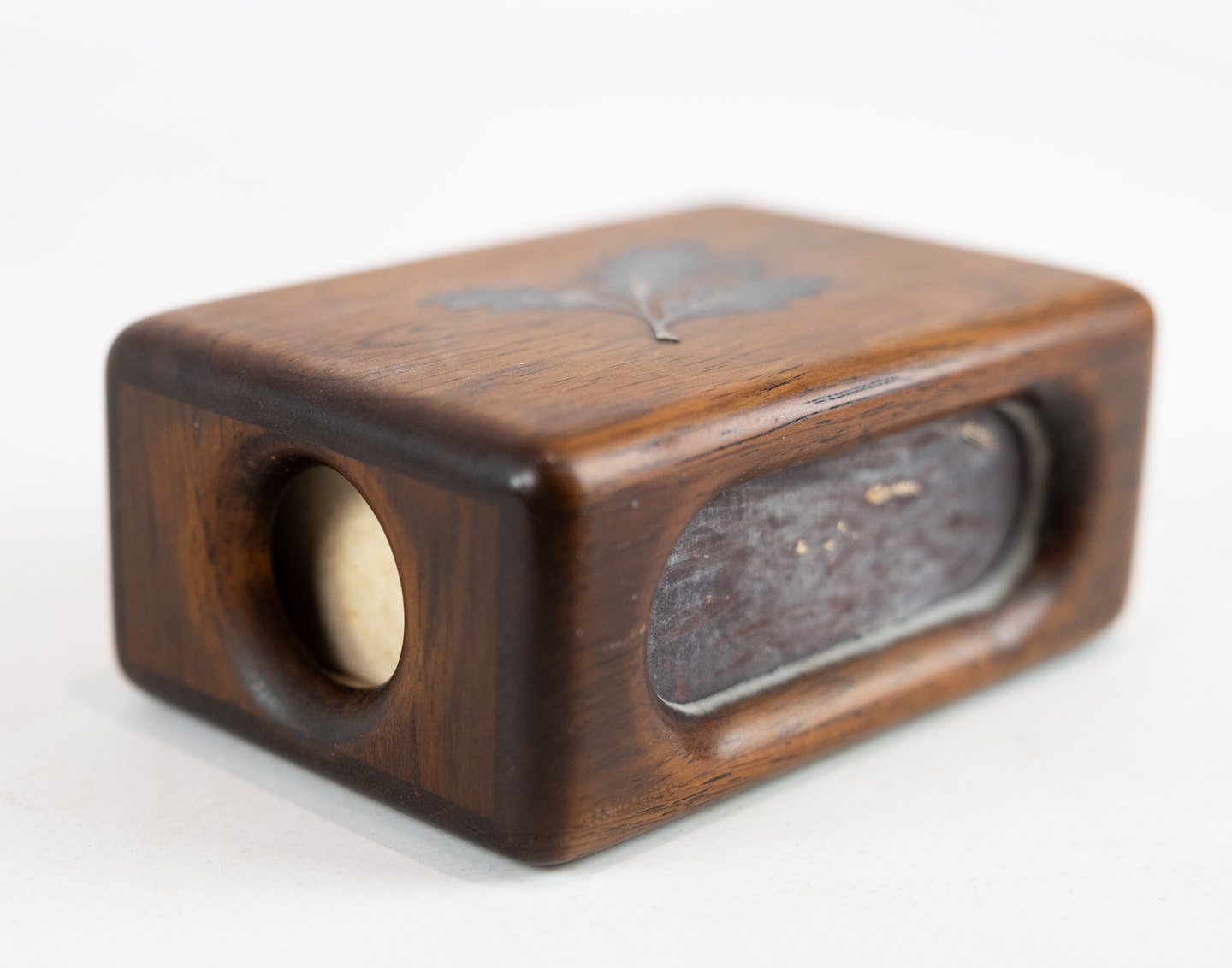 Stor tændstikæske i palisander dekoreret med bladmotiv.