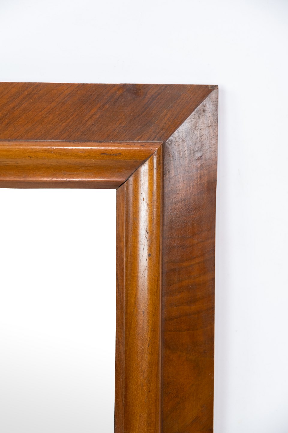 Spejl i nøddetræ af dansk design fra 1920erne. Spejlet er i flot brugt stand.