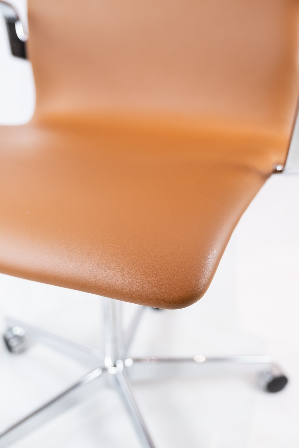 SoldThe Oxford classic office chair, model 3293C, with original upholstery of cognac leather, designed by Arne Jacobsen in 1963 and manufactured by Fritz Hansen. The chair is in great vintage condition.
