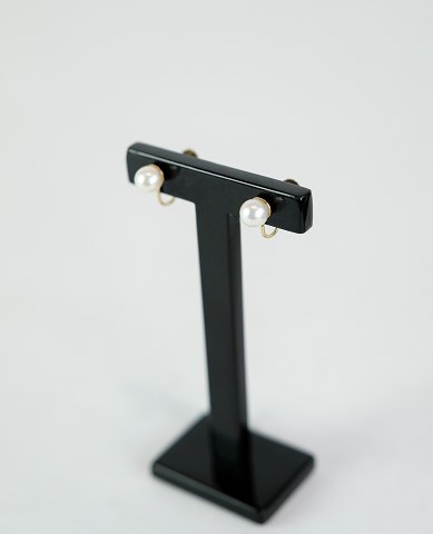 Sæt af øreringe af 18 karat guld med rosa kulturperle omkranset af 21 mindre diamanter.