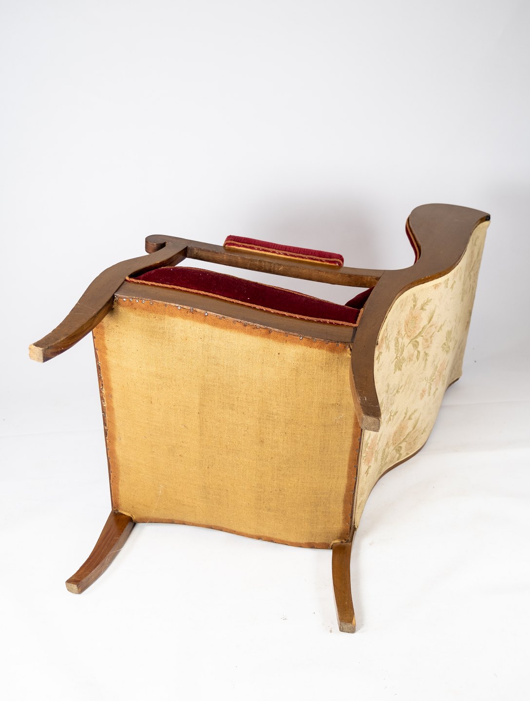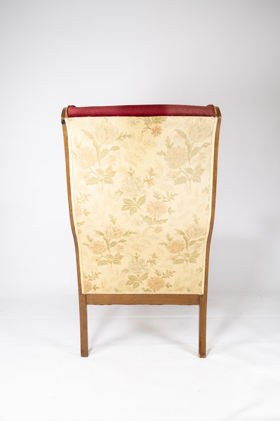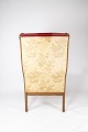Armchair upholstered with red velvet and mahogany designed by Fritz Henningsen.