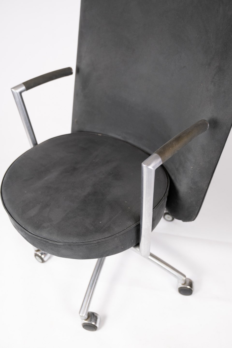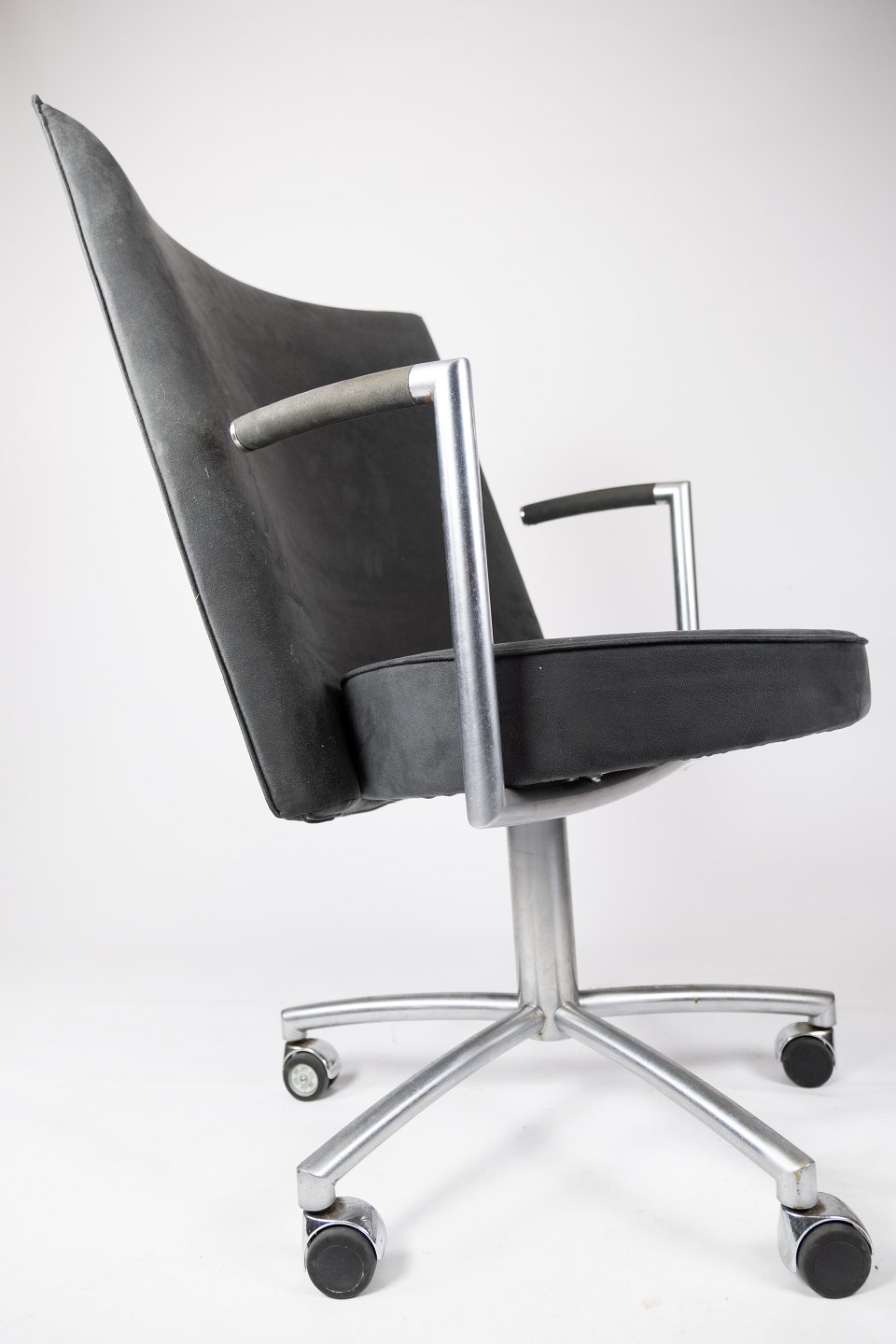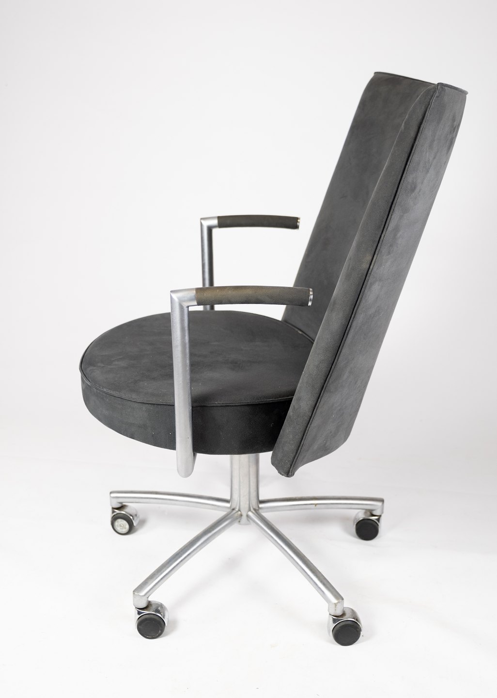 Kontorstolen model EJ70 er et elegant valg til enhver arbejdsplads. Den er polstret med et smukt mørkegråt stof, der tilføjer både stil og komfort til din arbejdsdag.