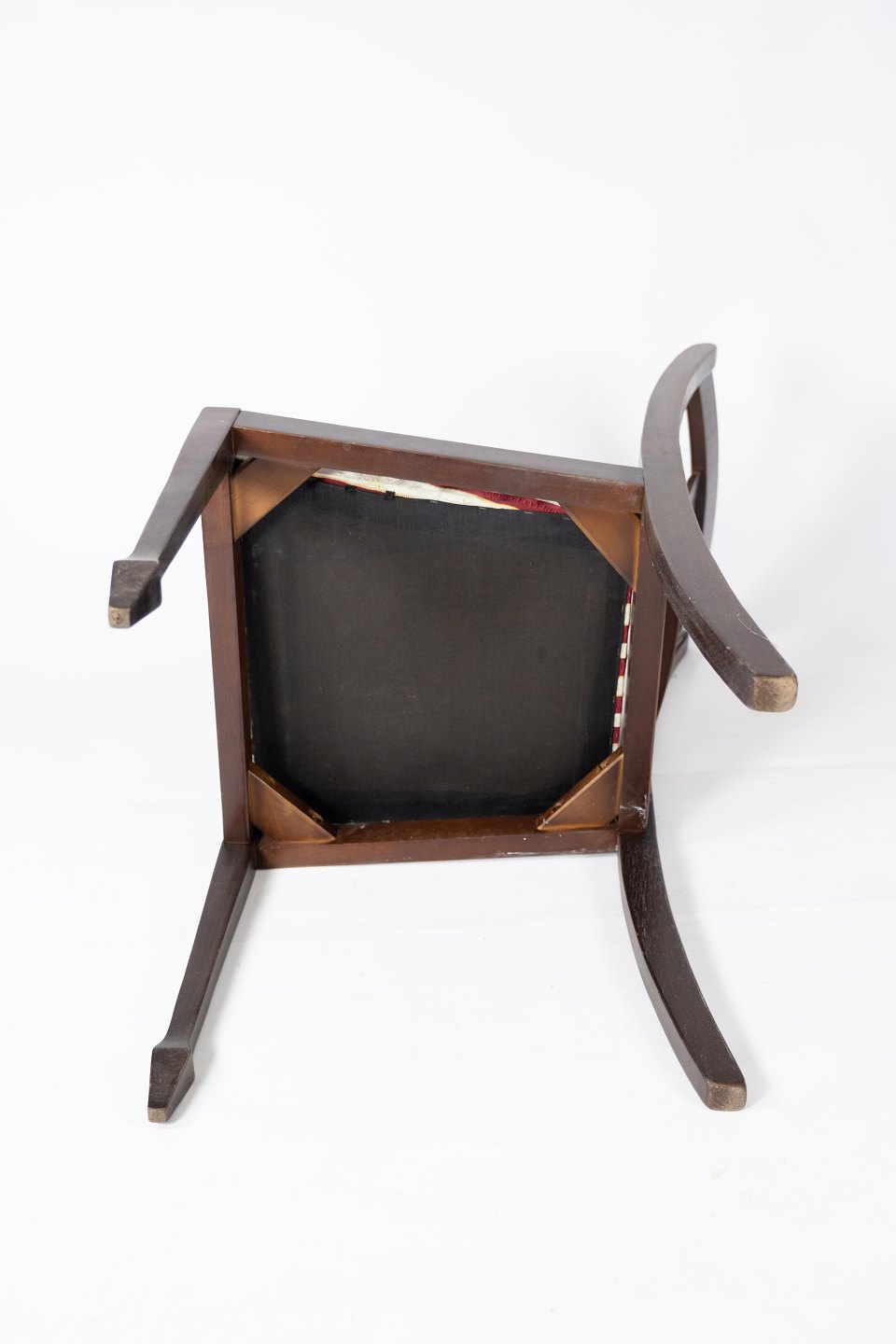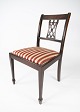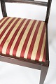 Et sæt spisestuestole af mahogni og polstret med stribet stof fra 1960erne. Stolene er i flot brugt stand.
