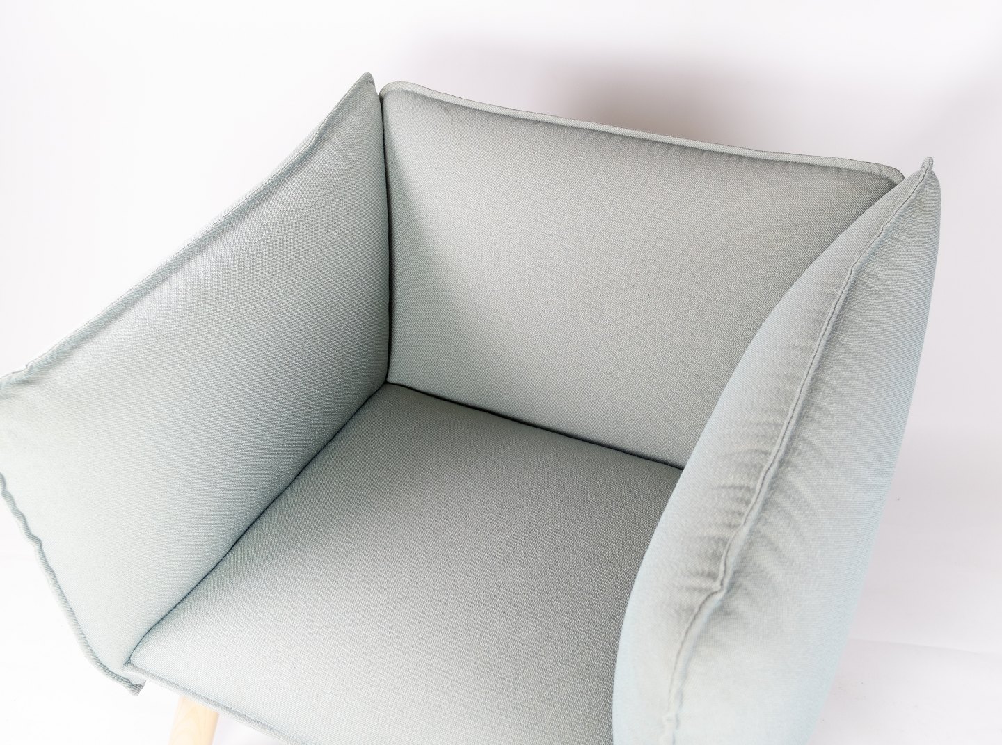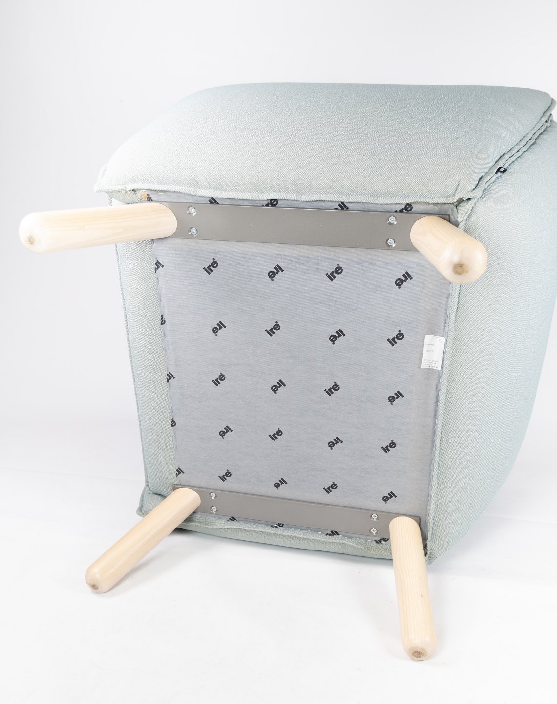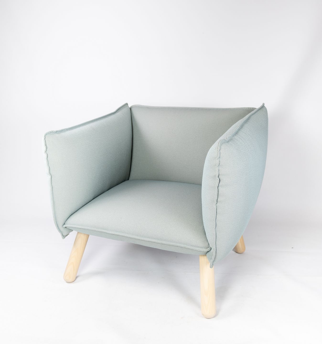 The Dormi lounge chair, upholstered in gray fabric and with beech legs, is an inviting piece of furniture that adds both comfort and style to any room. With its simple and modern design, this chair is perfect for relaxation and coziness.