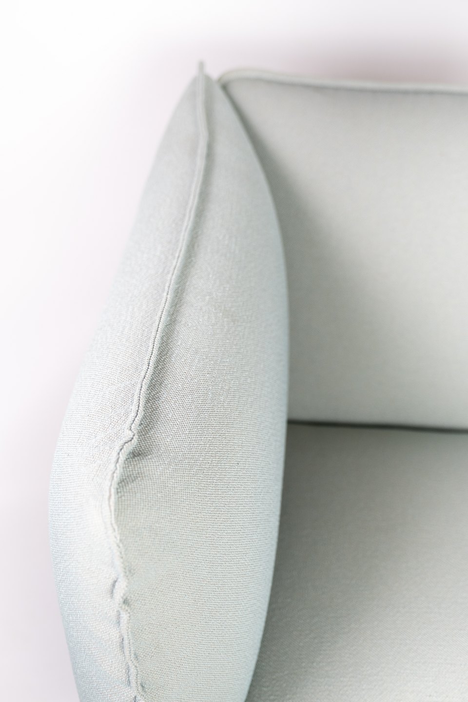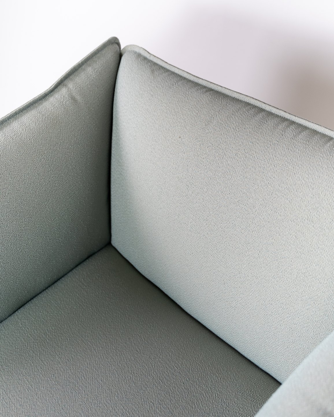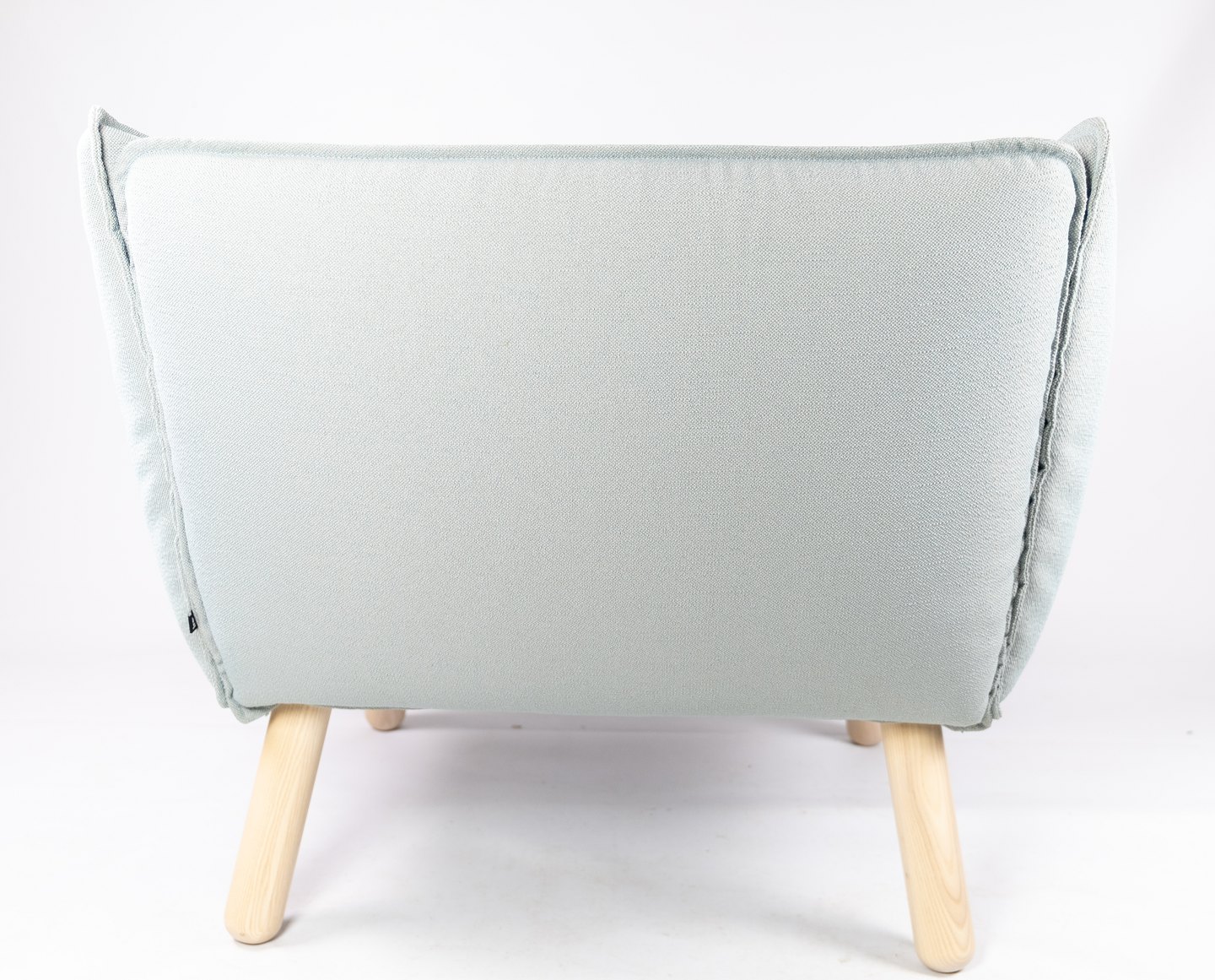 The Dormi lounge chair, upholstered in gray fabric and with beech legs, is an inviting piece of furniture that adds both comfort and style to any room. With its simple and modern design, this chair is perfect for relaxation and coziness.