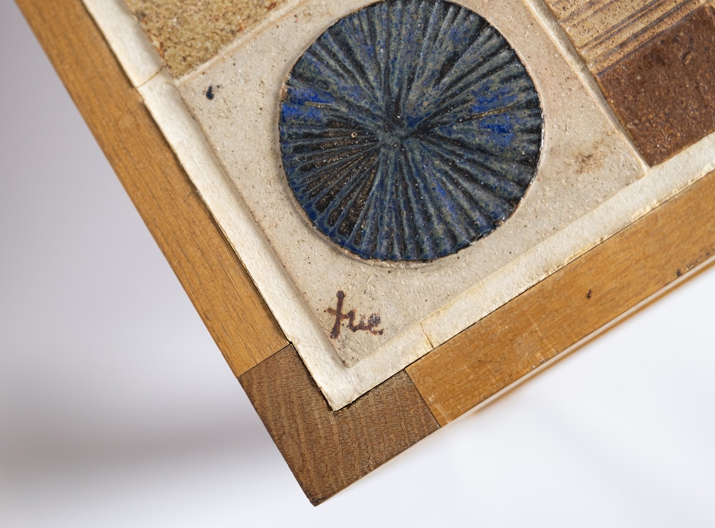 Coffee table in oak and with different tiles, designed by Tue Poulsen from the 1970s. The table is in great vintage condition.