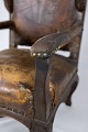 Antique armchair with original dark brown leather, in vintage condition from 1790.
