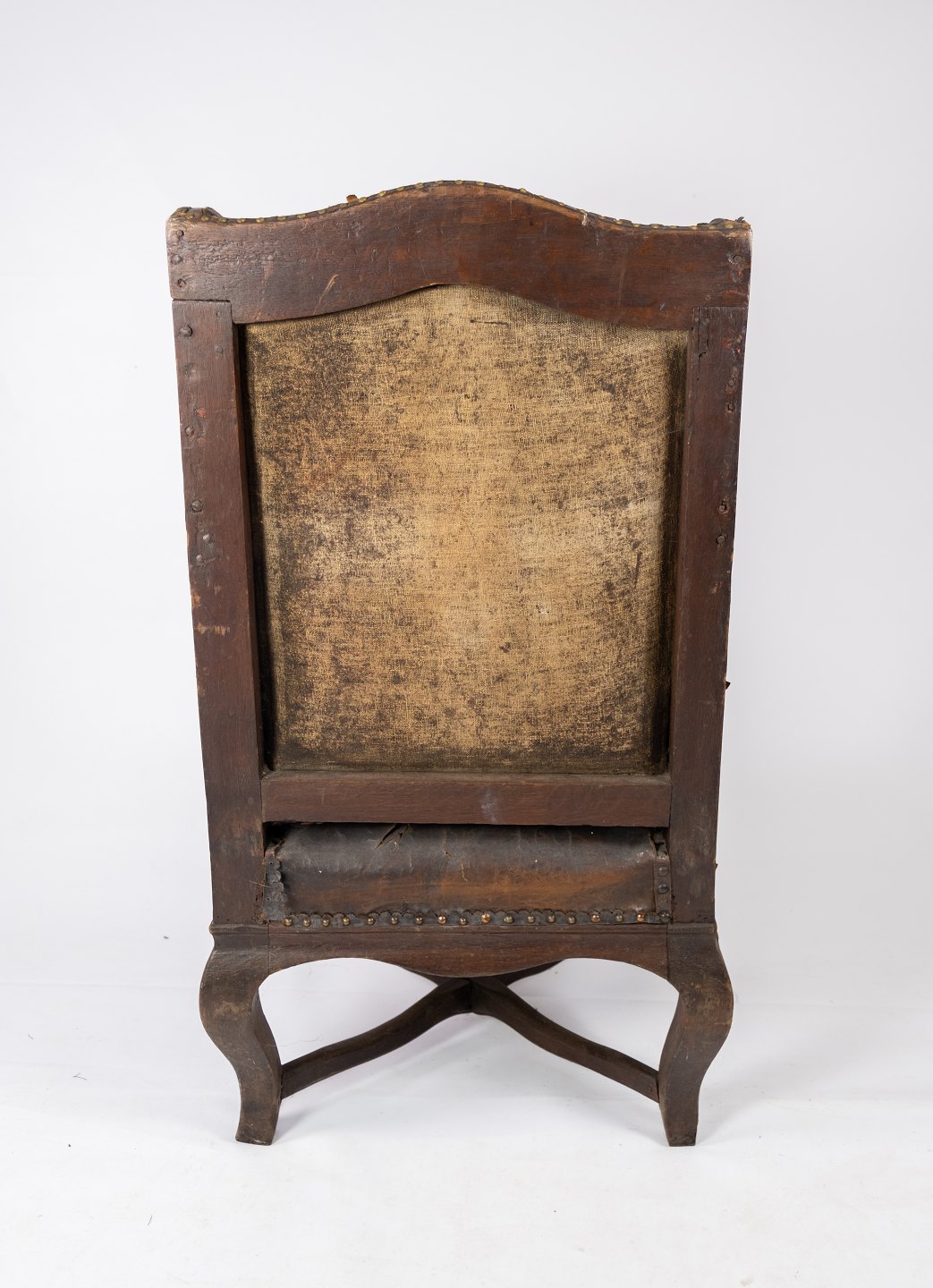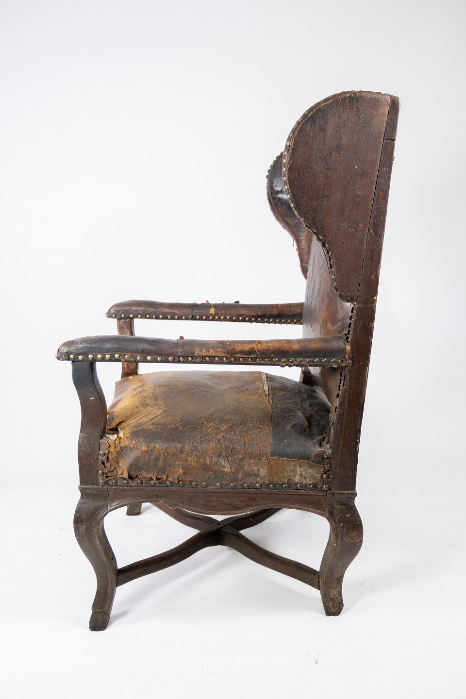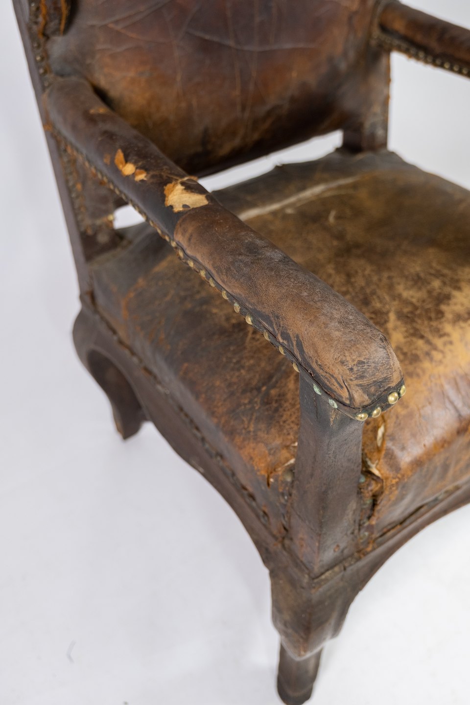 Antique armchair with original dark brown leather, in great condition from 1790.