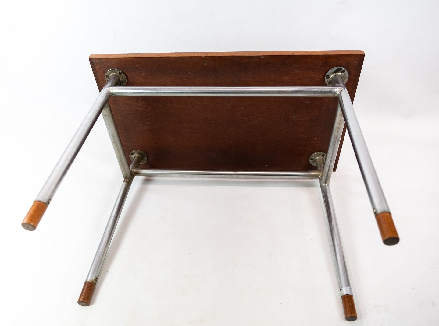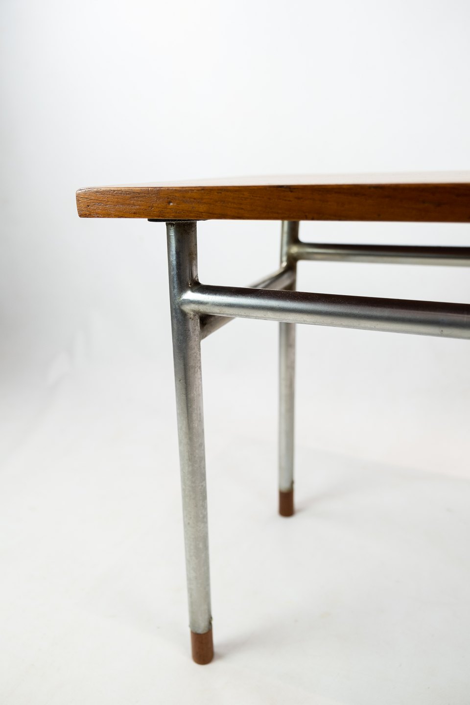 Coffee table in teak and legs in metal, designed by Hans J. Wegner and manufactured by Ry Furniture from the 1960s. The table is in great vintage condition.