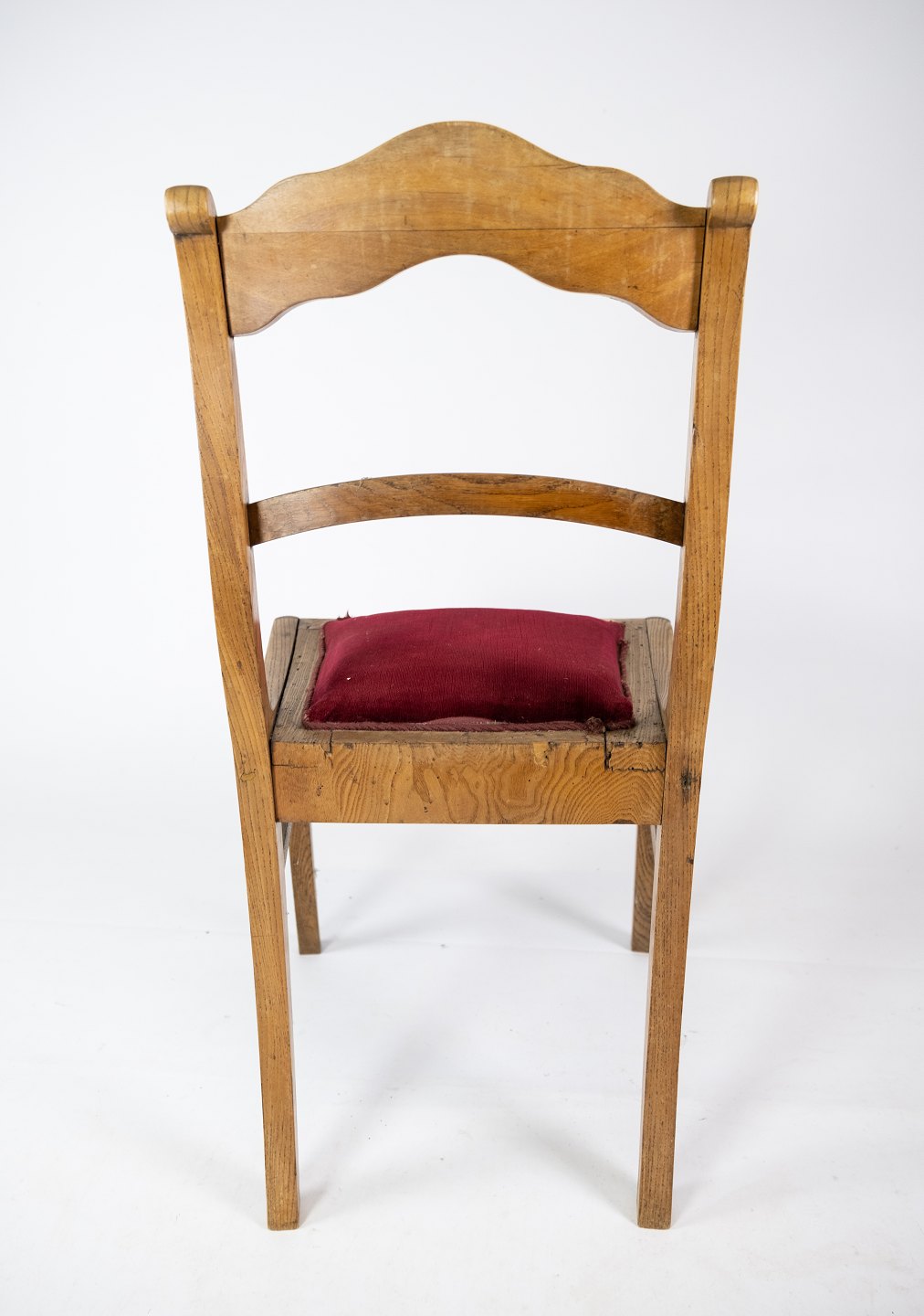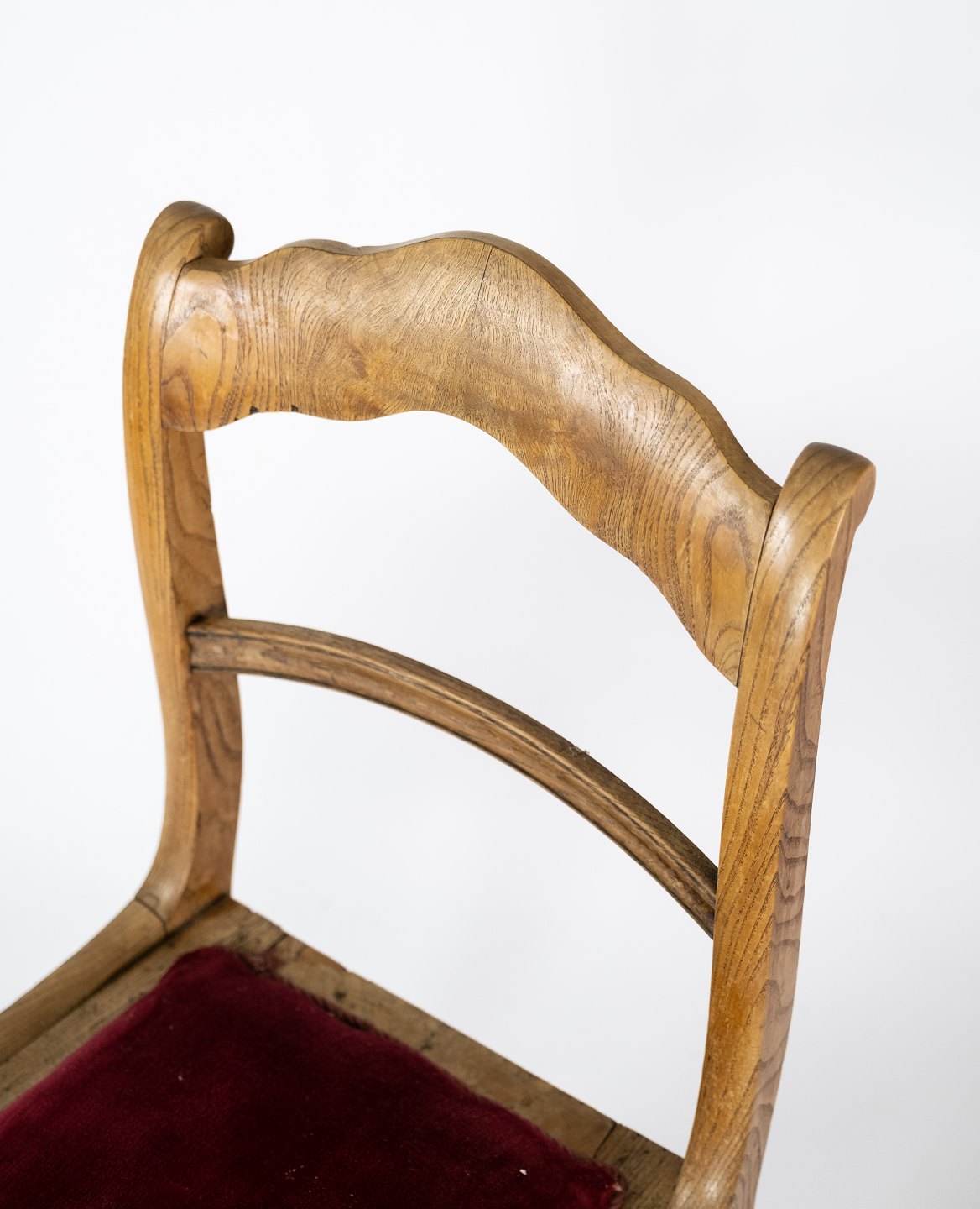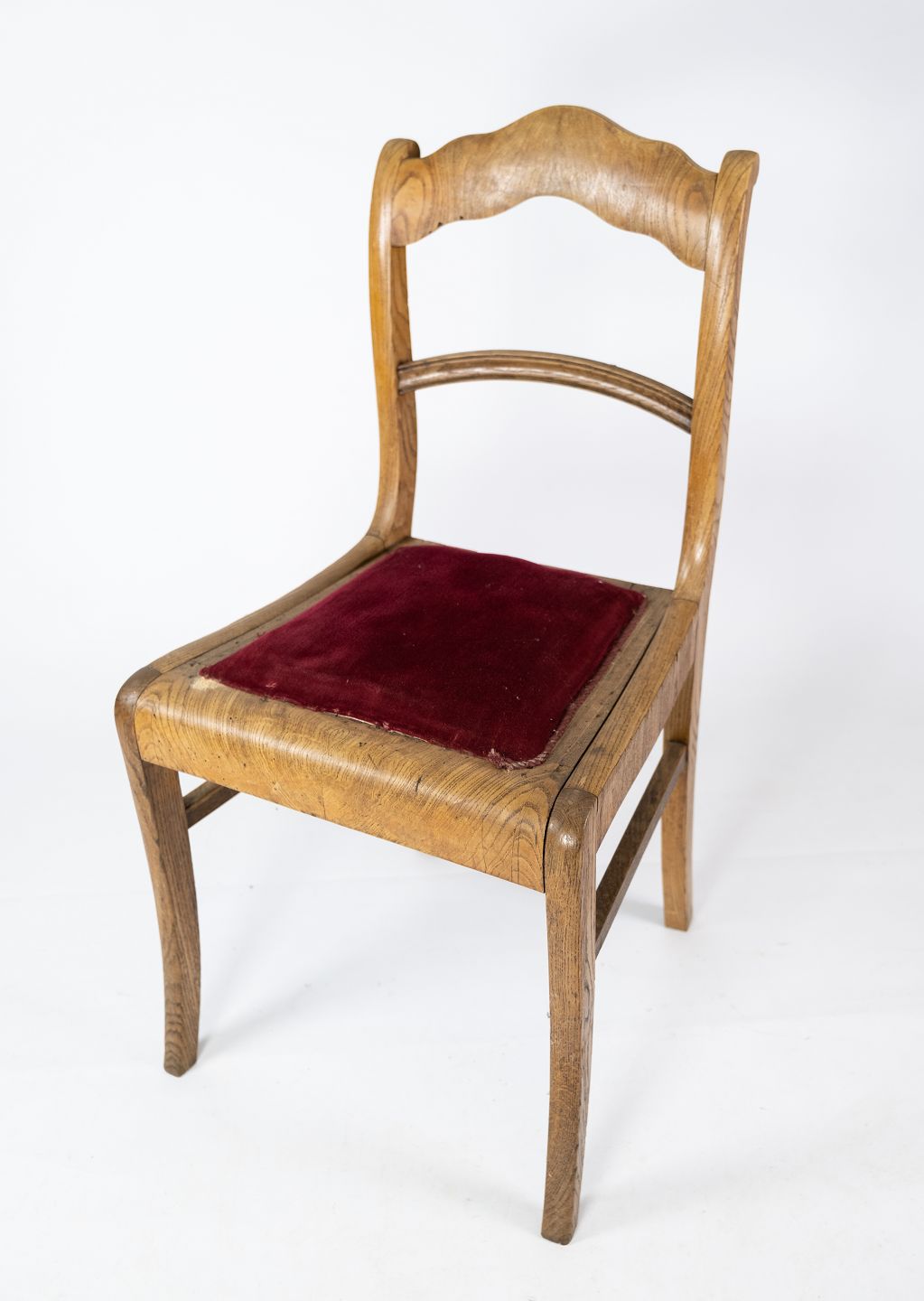 Antique chair of elm wood and upholstered with red velvet from the 1920s. The chair is in great vintage condition.