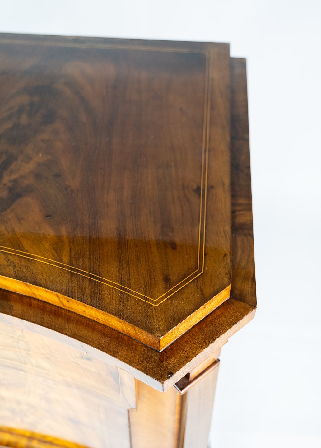 Southern German chest of drawers of mahogany with inlaid wood in great antique condition from the 1840s.