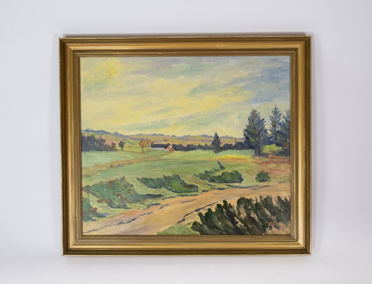Oil painting with nature motif and gilded frame, signed V. Hartnack by Valdemar Hartnack 1895-1969.
