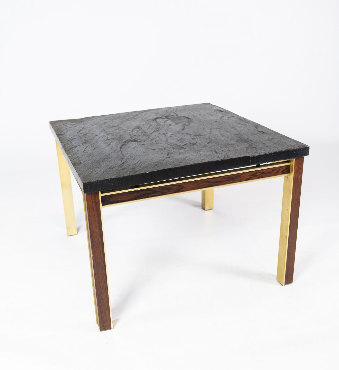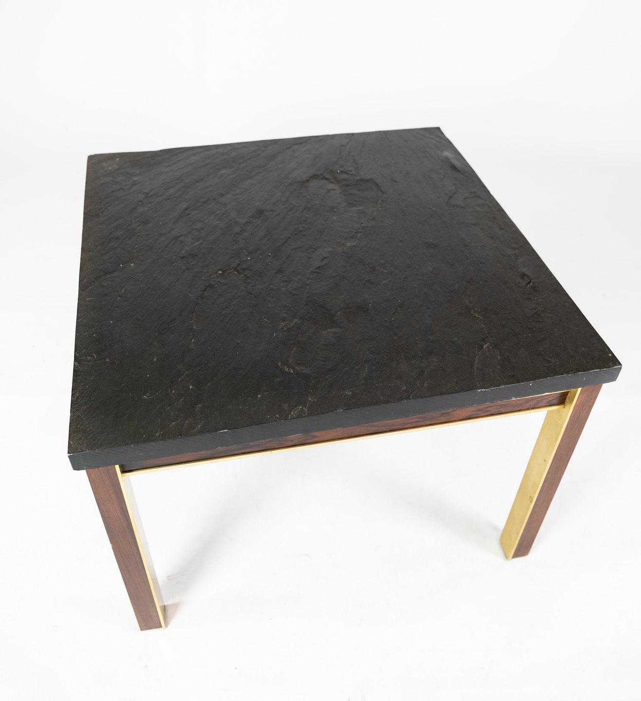 Coffee table with slate plate, frame of gilded metal and rosewood by Bendixen Design from the 1970s. The table is in great used condition.