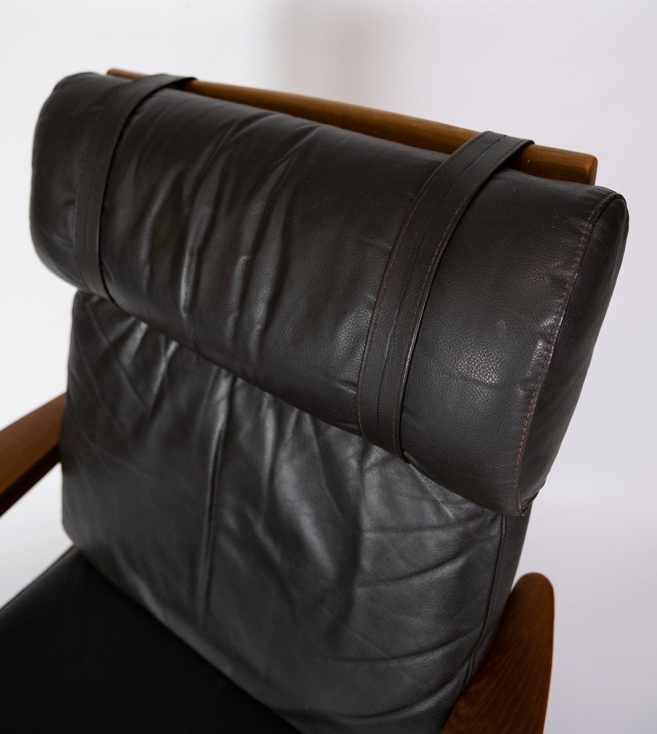 Lænestol og Skammel - Teak - Sort Læder - Arne Vodder - Fremstillet Af Komfort - 1960