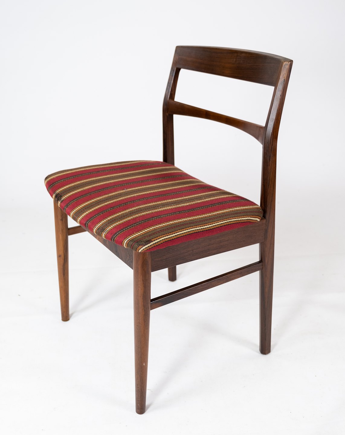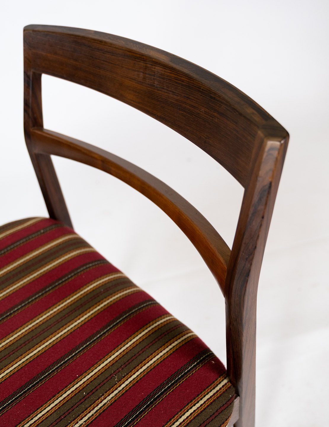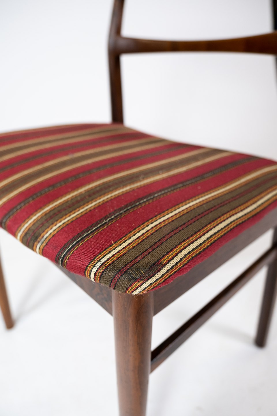 Sæt Af Fire Spisestuestole - Palisander - Stribet Stof - Dansk Design - 1960
