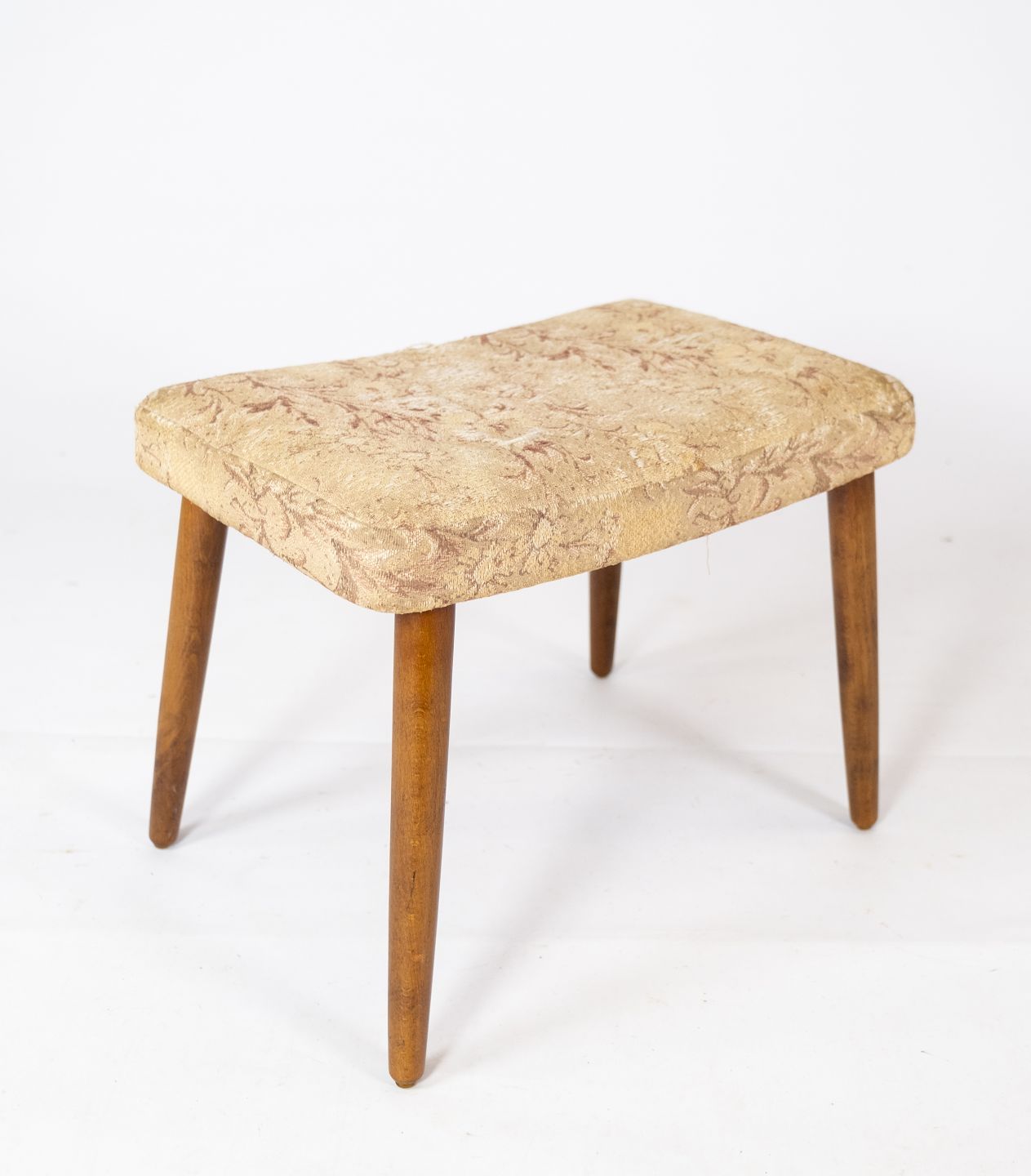 Stool - Teak - Flowered Fabric - Danish Design - 1970