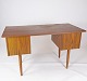 Dette skrivebord er et smukt eksempel på dansk design fra 1960'erne, fremstillet af teaktræ, hvilket giver det et naturligt og tidløst udseende. Den smukke gyldne farve og unikke træmønster tilføjer karakter og varme til ethvert rum. Med sit enkle og elegante design passer skrivebordet sømløst ind i både moderne og klassiske indretninger.