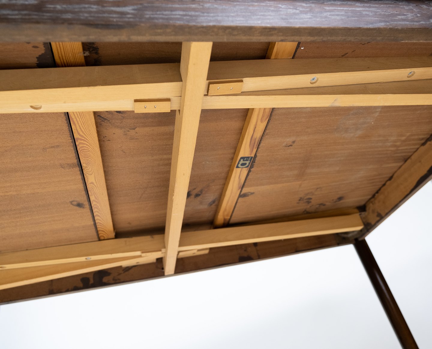 Dining table in dark oak with extensions of danish design from the 1960s.