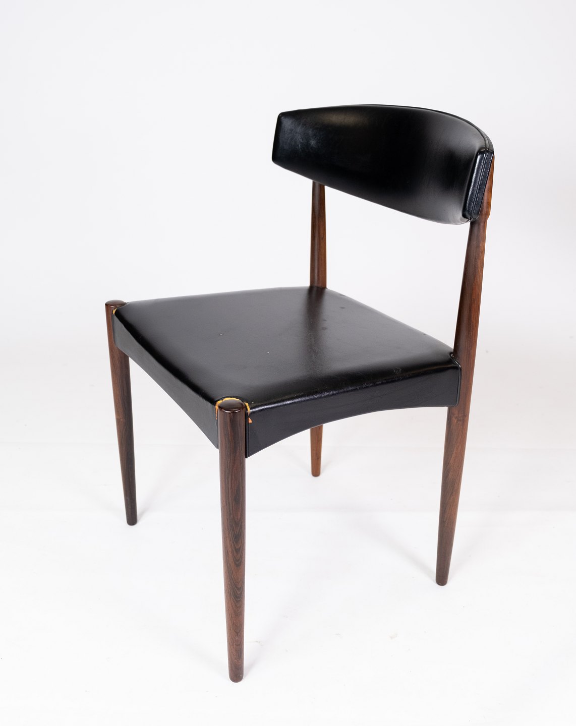This set of four dining chairs is a beautiful example of Danish design from the 1960s. The chairs are made of rosewood, an exclusive wood known for its rich color and beautiful grain.