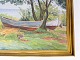 Oliemaleri med motiv af robåde og med forgyldt ramme fra 1920erne.