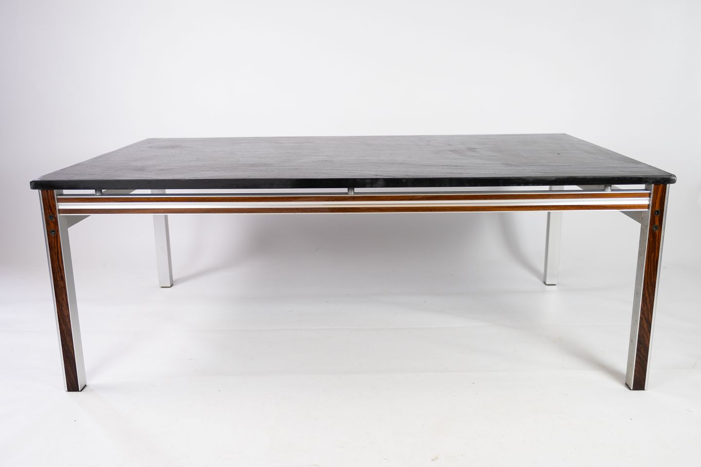 Coffee table with black slate plate and frame in rosewood and metal, of danish design from the 1970s. The table is in great vintage condition.