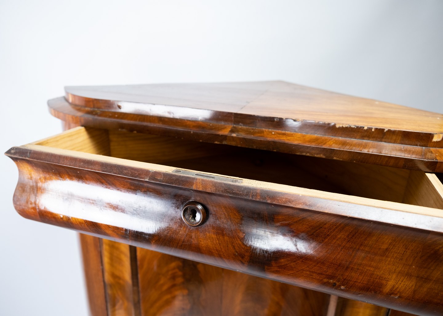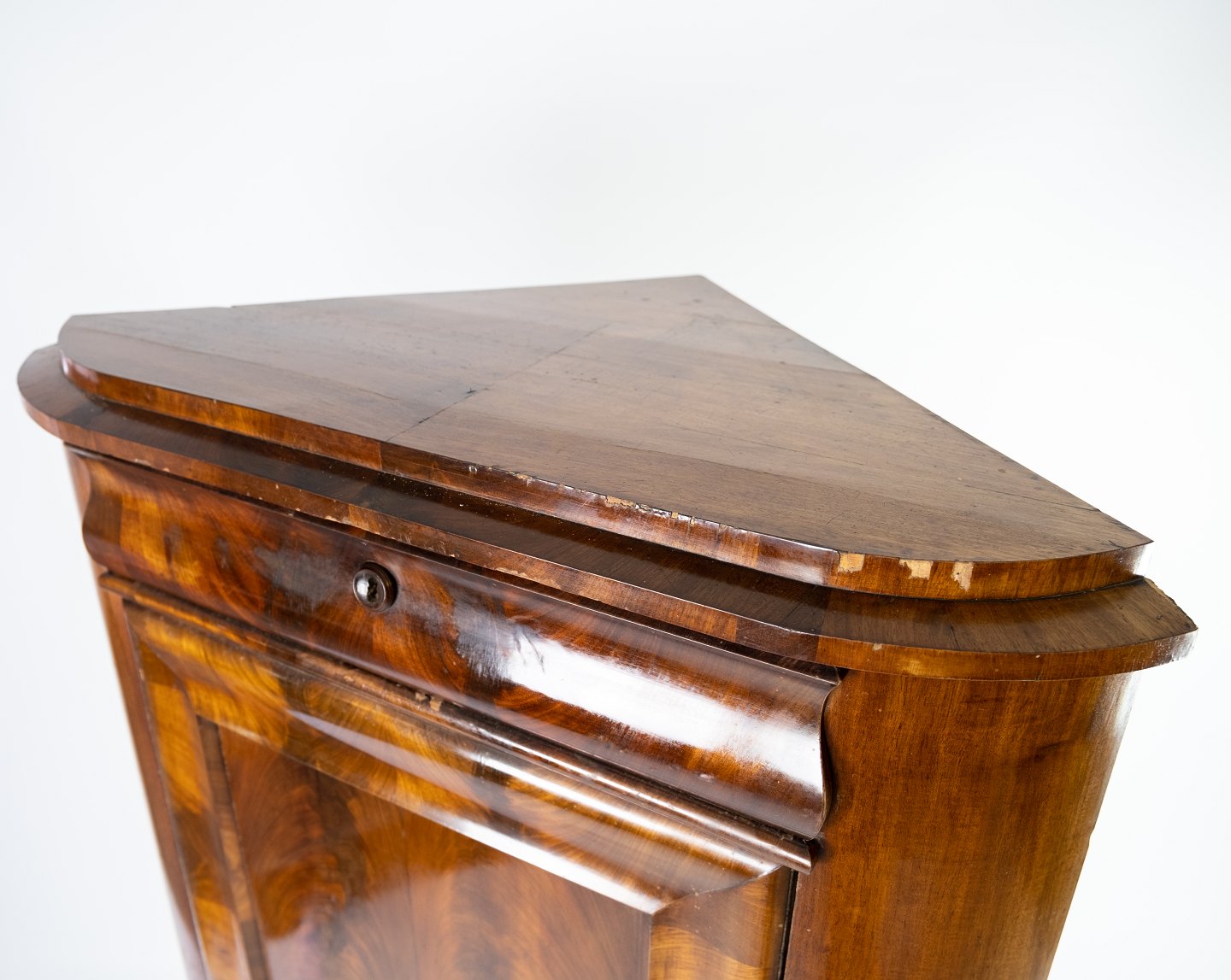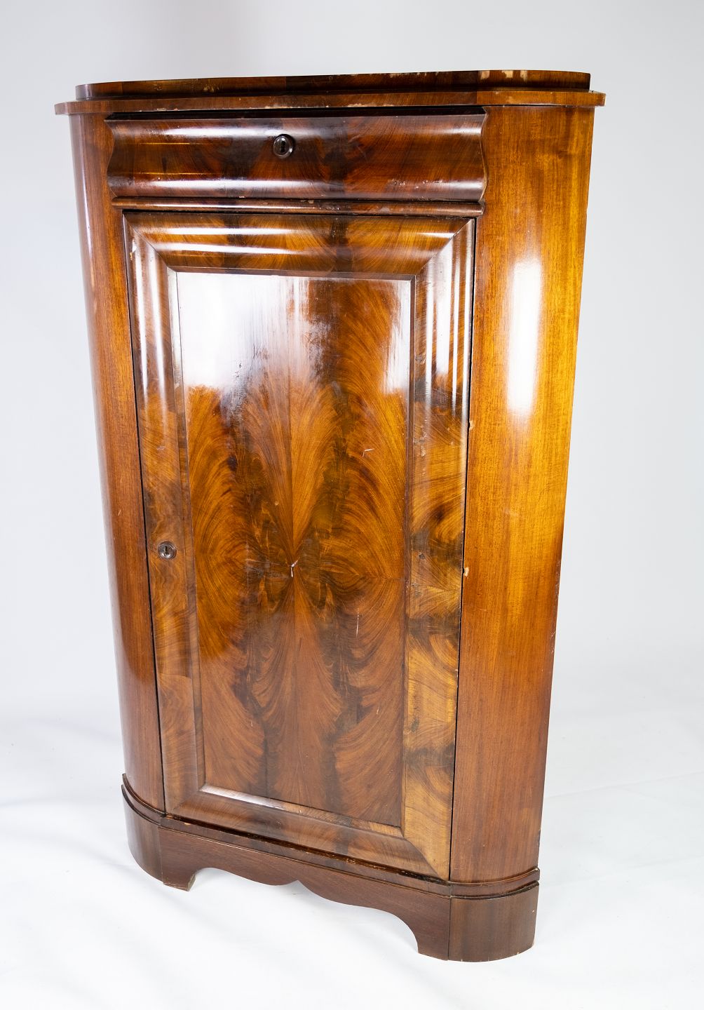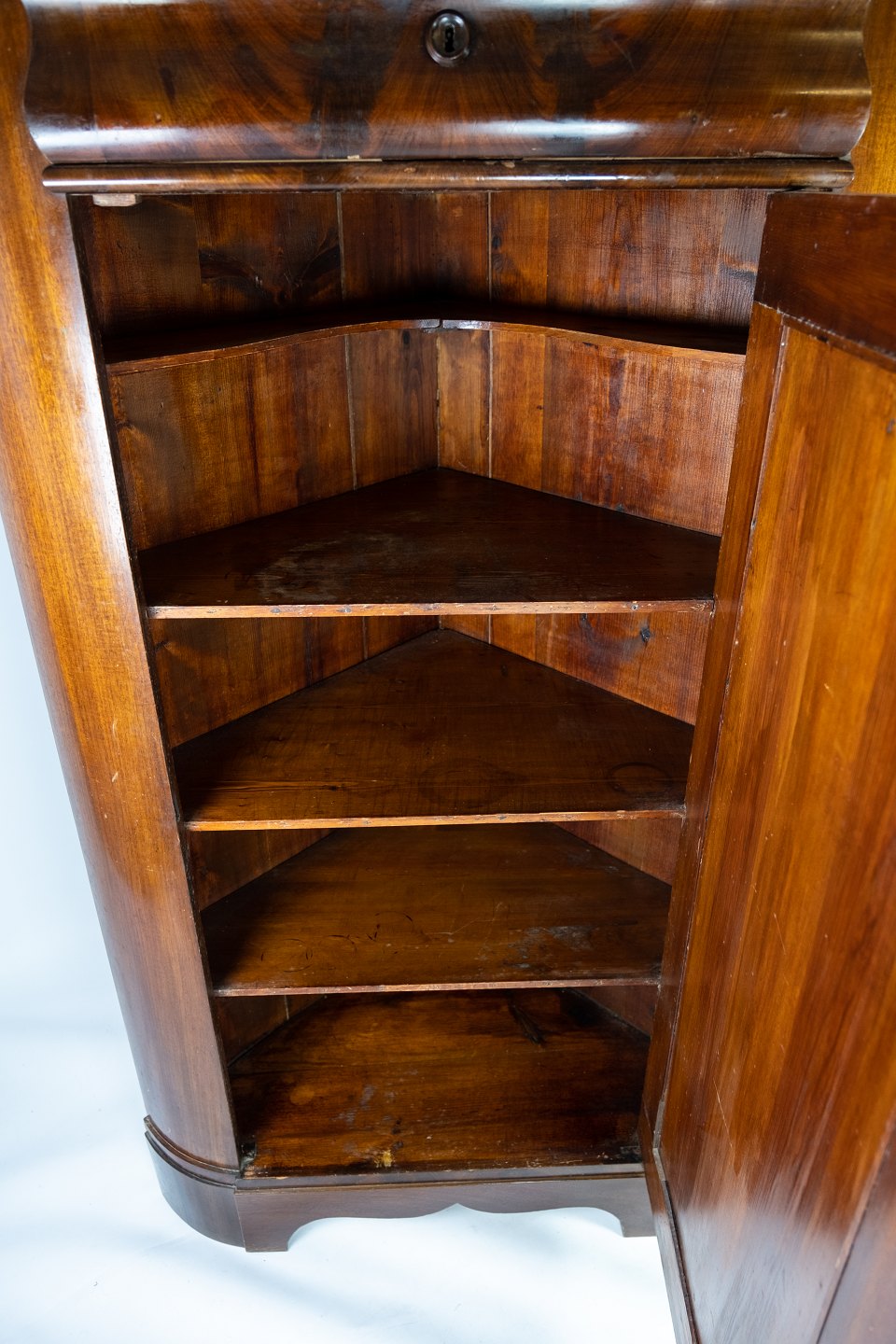 Stort sen empire hjørneskab af mahogni og i flot brugt stand fra omkring 1840erne.