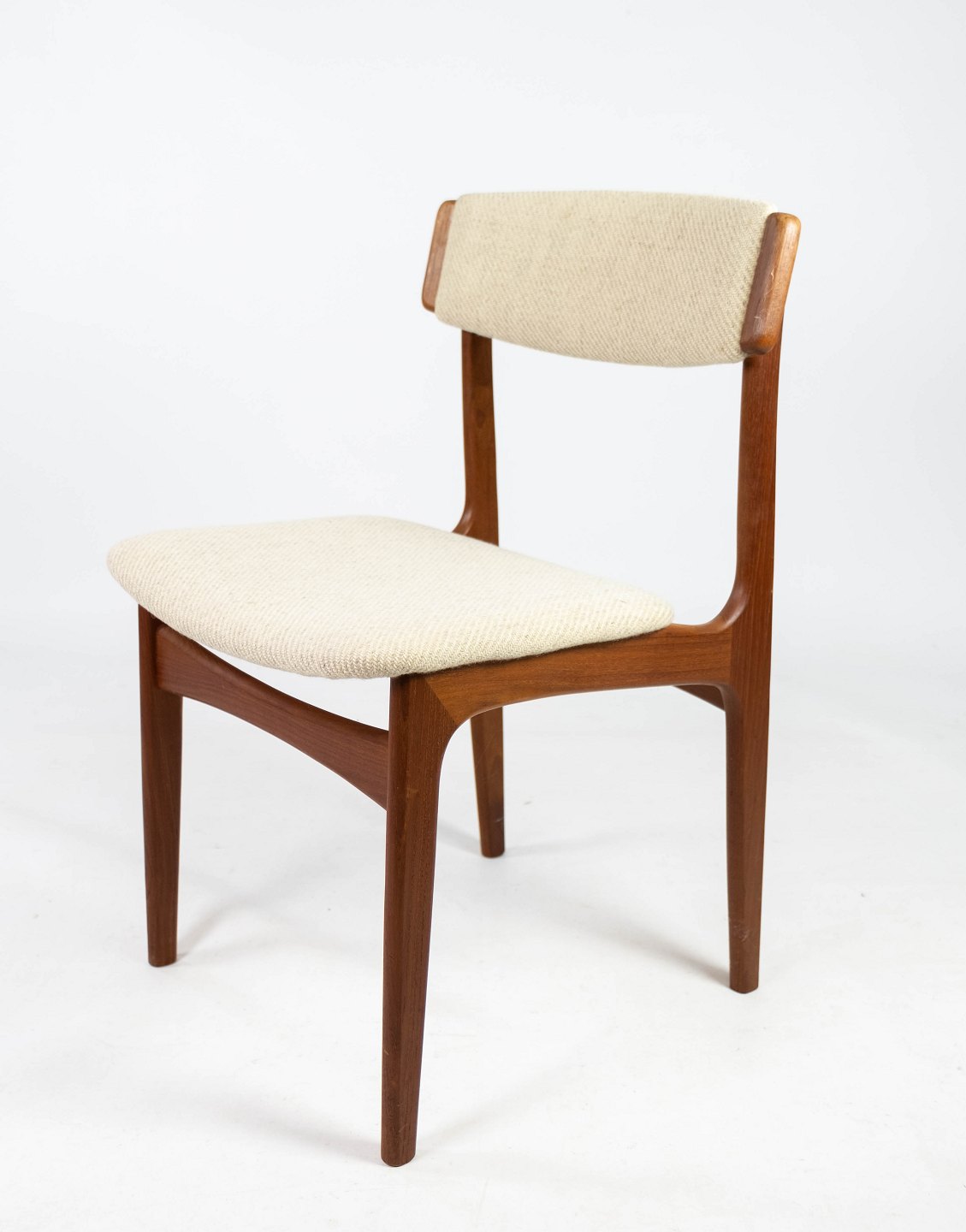 Set of two dining room chairs in teak and upholstered with light Hallingdal wool fabric of danish design from the 1960s. The chairs are in great vintage condition.