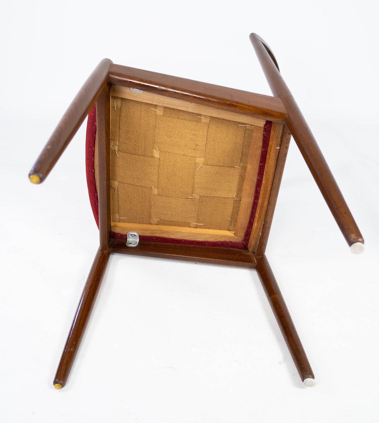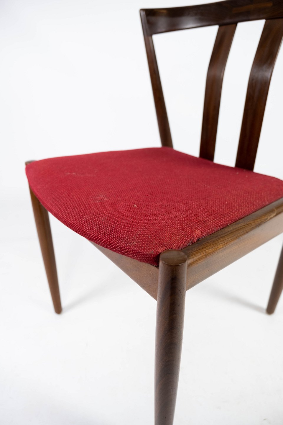 Dining room chair in teak and upholstered with red fabric of danish design from the 1960s. The chair is in great vintage condition.