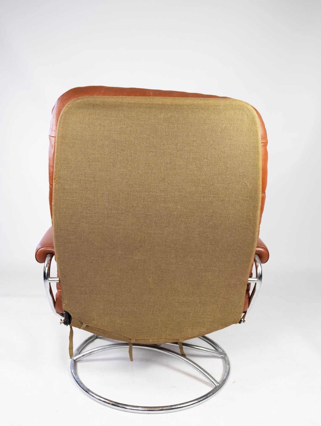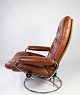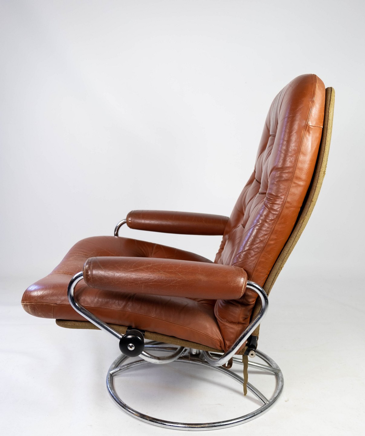 Easy chair upholstered with brown patinated leather of norwegian design from the 1970s.