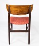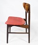 Sæt af fire spisestuestole I palisander polstret med rødt stof, af dansk design fra 1960erne. Stolene er i flot brugt stand.