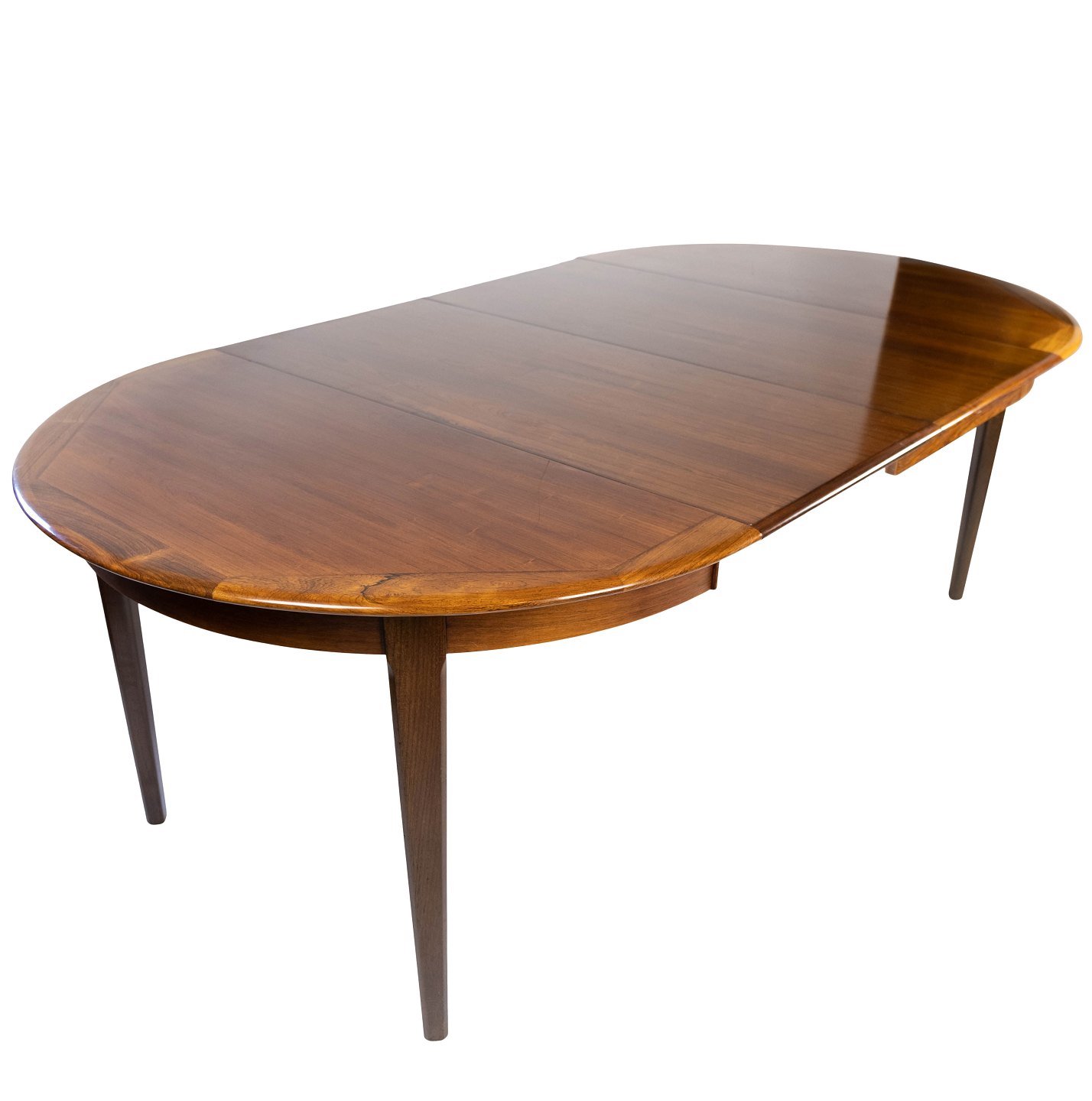 Dining table in rosewood with two extension plates, of danish design from the 1960s. The table is in great vintage condition.