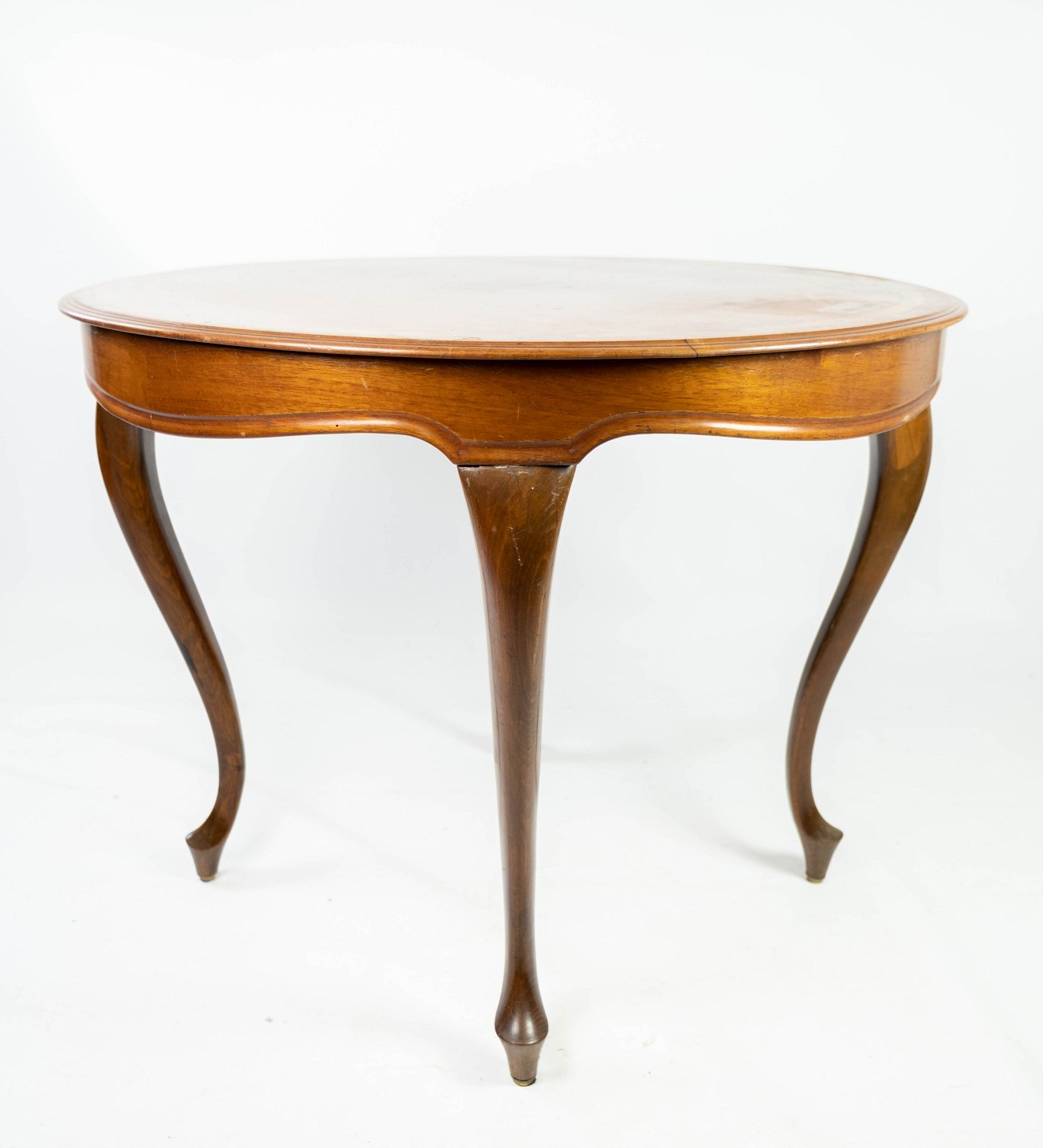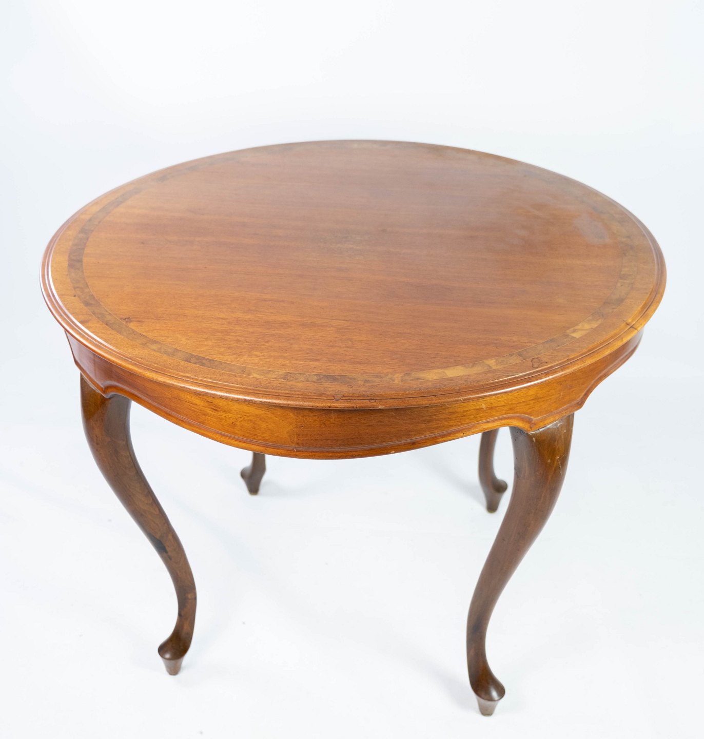 Round dining table of mahogany with inlaid wood of walnut, in great vintage condition from 1880.