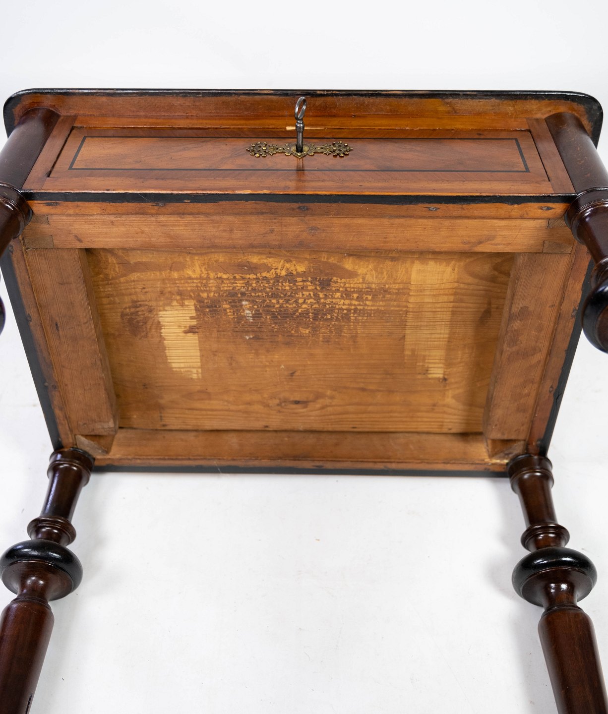 SoldSide table in mahogany with inlaid walnut and ebony, in great vintage condition from 1860.