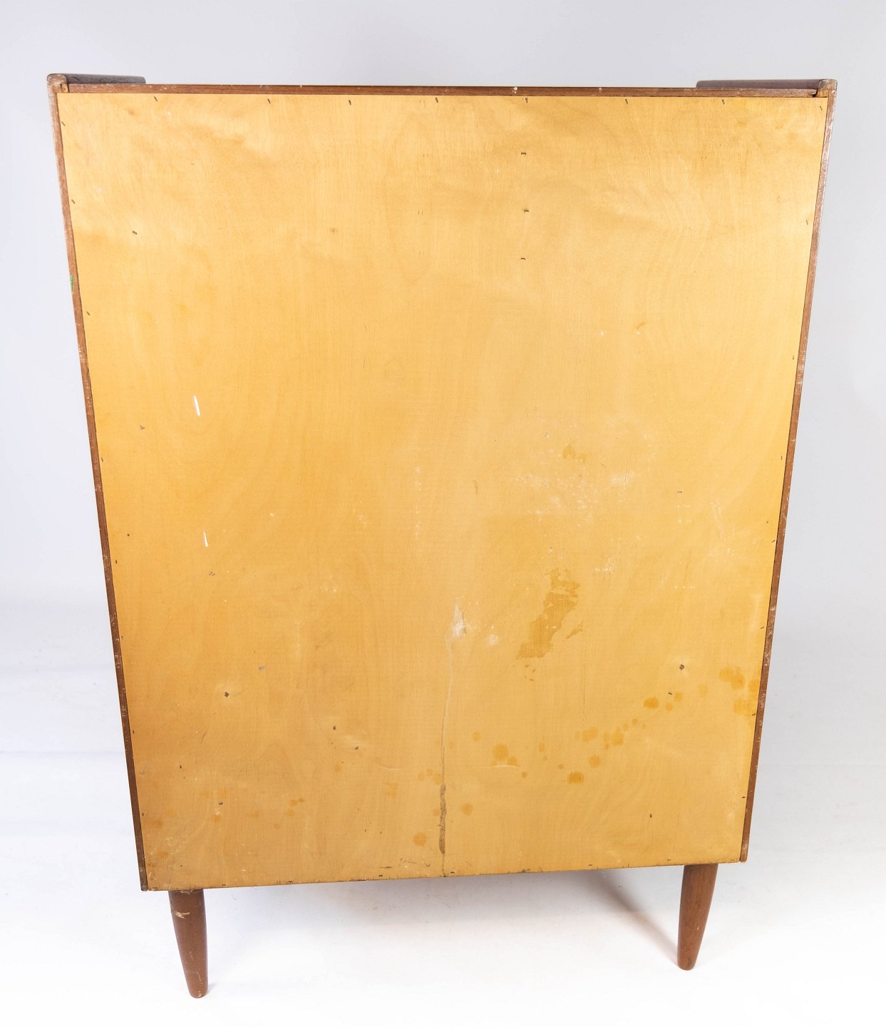 Med sit enkle og funktionelle design udstråler kommoden den minimalistiske æstetik, der var populær i 1960'ernes dansk design. Denne enkelthed gør kommoden velegnet til en række forskellige indretninger og rum, og dens holdbare konstruktion sikrer, at den vil være et praktisk og stilfuldt møbelstykke i mange år fremover.